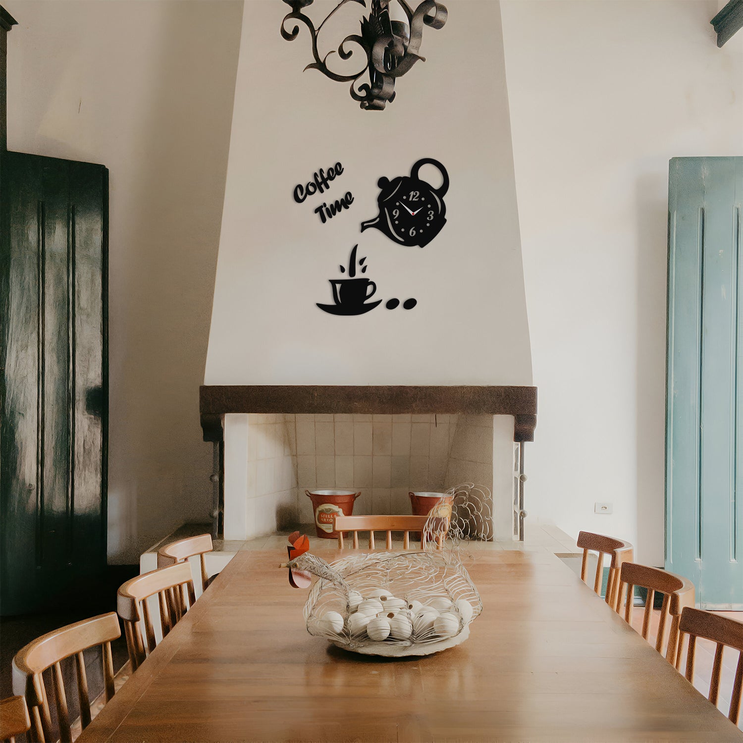 - Een stickerklok met 3D grote cijfers die verwijzen naar de koffieklok is eenvoudig te plakken. De frameloze vorm verfraait uw muur met luxe.