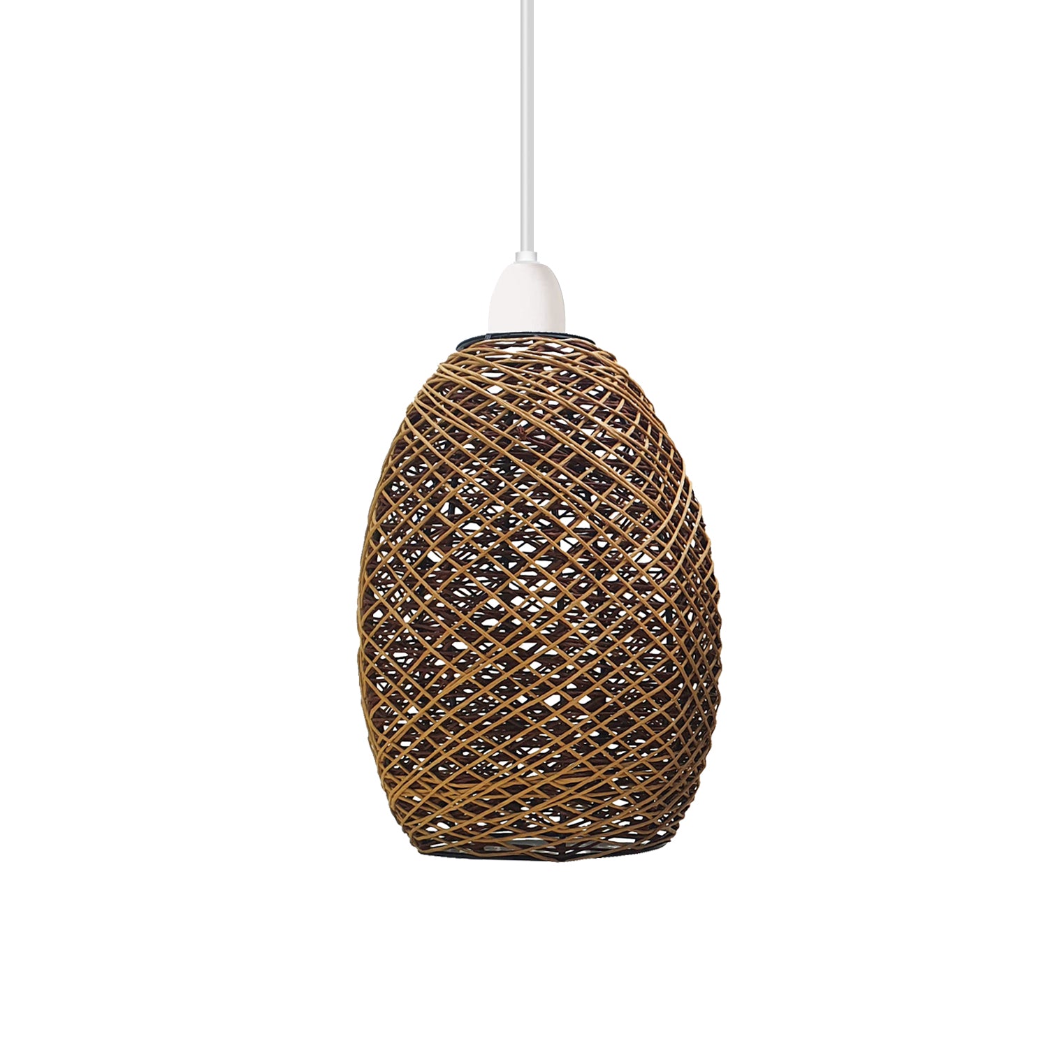- Gemakkelijk te monteren lampenkappen in rotan-stijl, gemaakt van gevlochten rotan- of rietmateriaal.