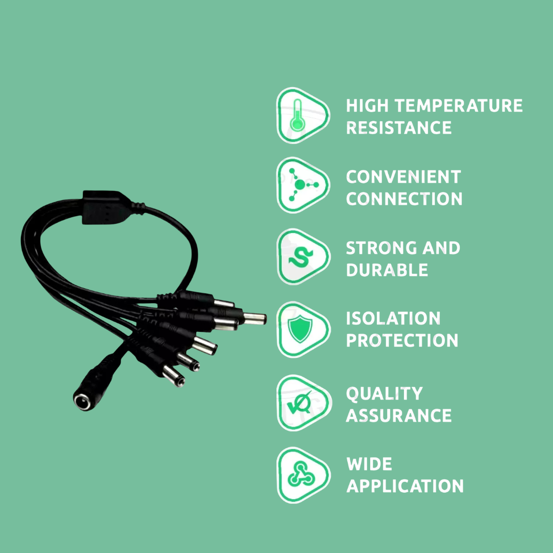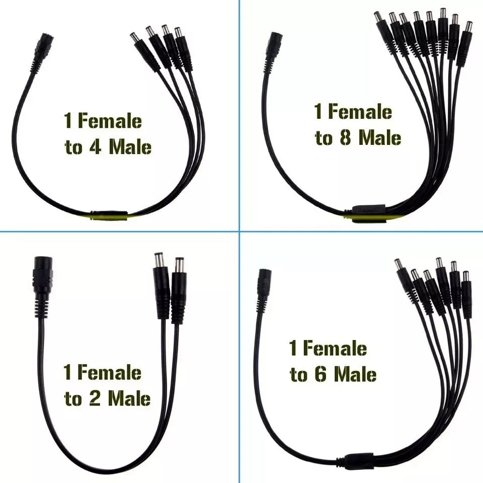 - 2, 4, 6 en 8-voudige DC-stroomsplitteradapterkabel, ideaal voor 12V-toepassingen.