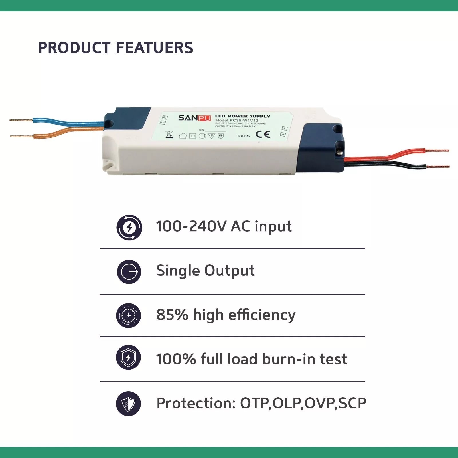 - De voedingstransformator is geschikt voor stripverlichting GU4 G4 MR11 en MR16 LED-lampen.