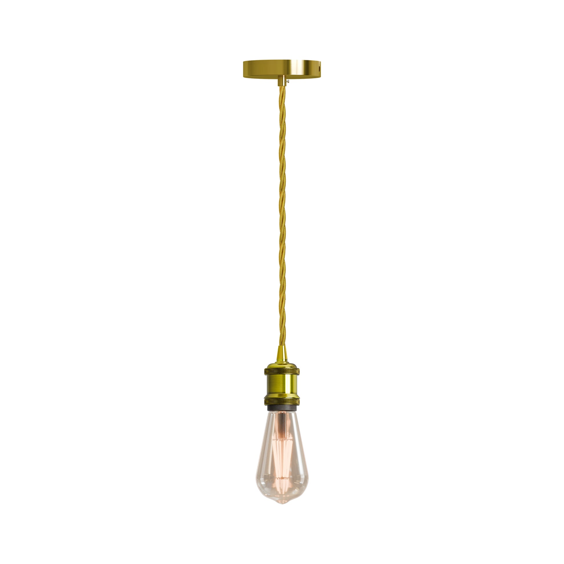 • 1x Hanglampset (vintage, hoog gepolijste lampenhouder met 1 m 3-aderige gedraaide stoffen kabel, 1x plafondrozet met accessoires) De lamp is niet inbegrepen.