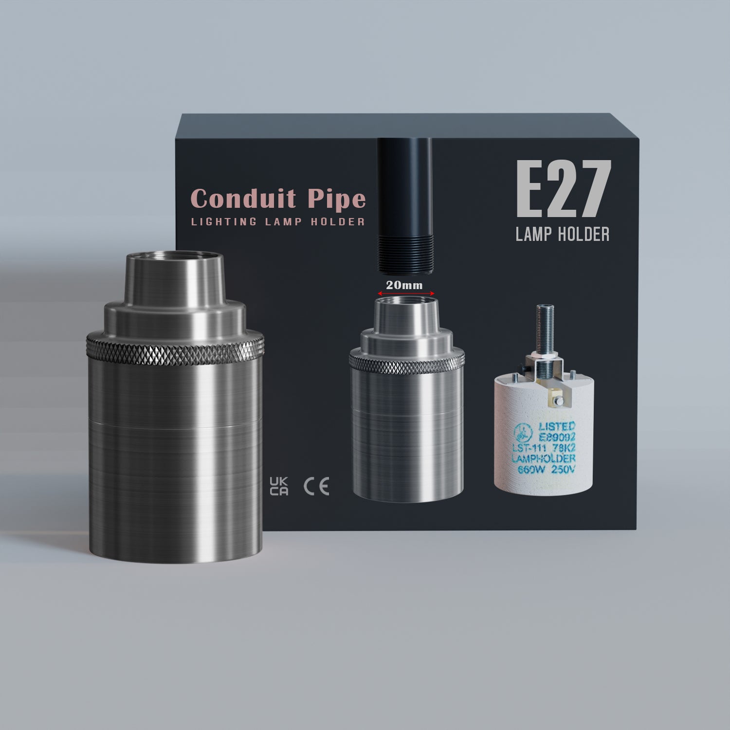 - Deze E27 Edison-schroefdraadlamphouder van metaal met een 20 mm vrouwelijke schroefdraad is ideaal voor het vervangen van lampen of voor het maken van uw eigen pijplampprojecten.