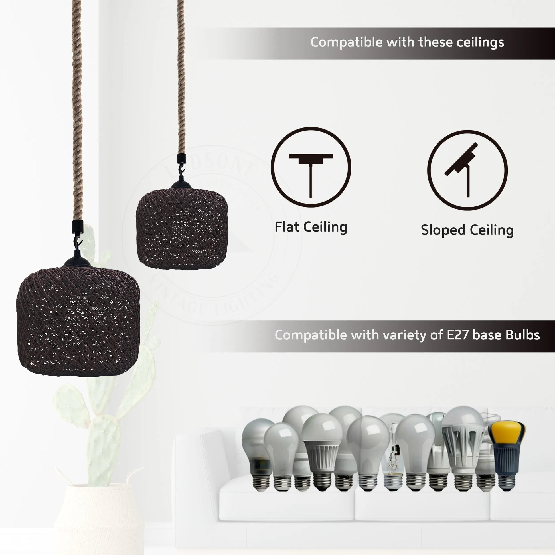 - Lamptype: Compatibel met alle soorten E27-lampen