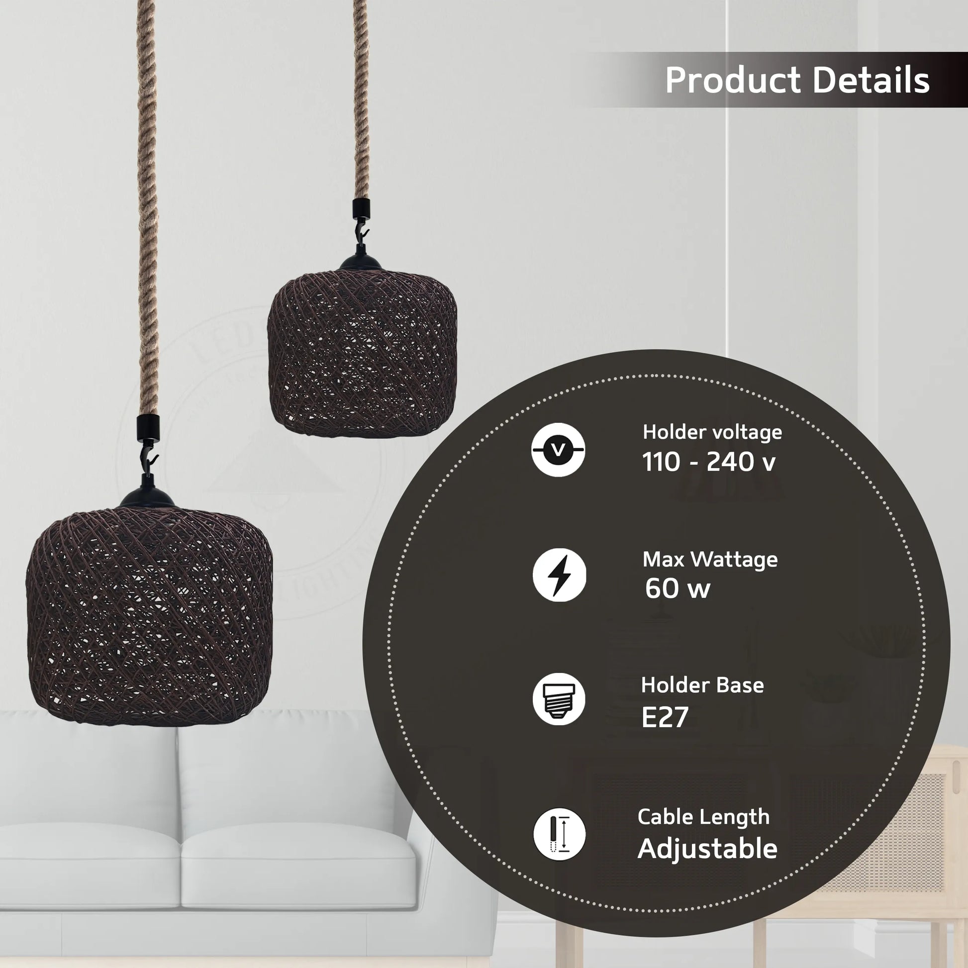 - Lampvereisten: Vereist E27 max 60W