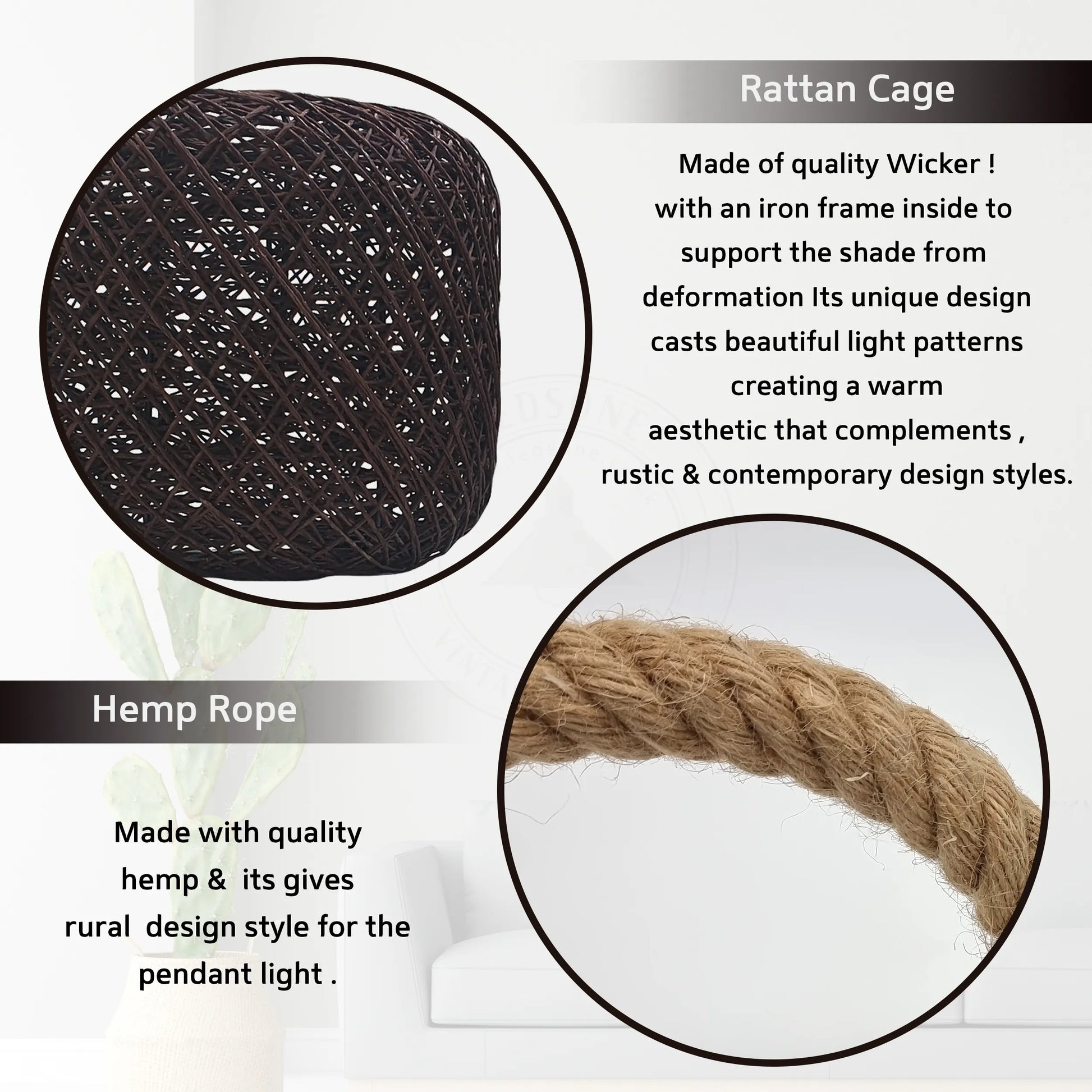 - Materiaal: metaal, rotan, hennep