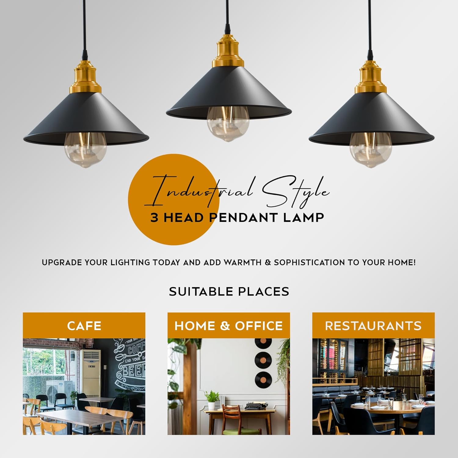 Verlicht je huis met de LEDSONE E27 3-Head Industriële Hanglamp, een perfecte mix van vintage charme en modern design.