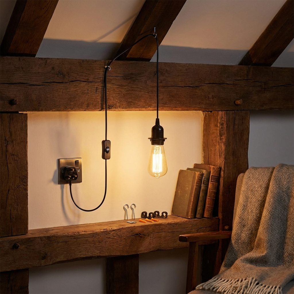 • 1 x Plug-in hanglamp met montage-onderdelen.