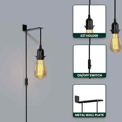 E27 Plug in Black Light Socket Cord Stylish Ceiling Hanging Lights