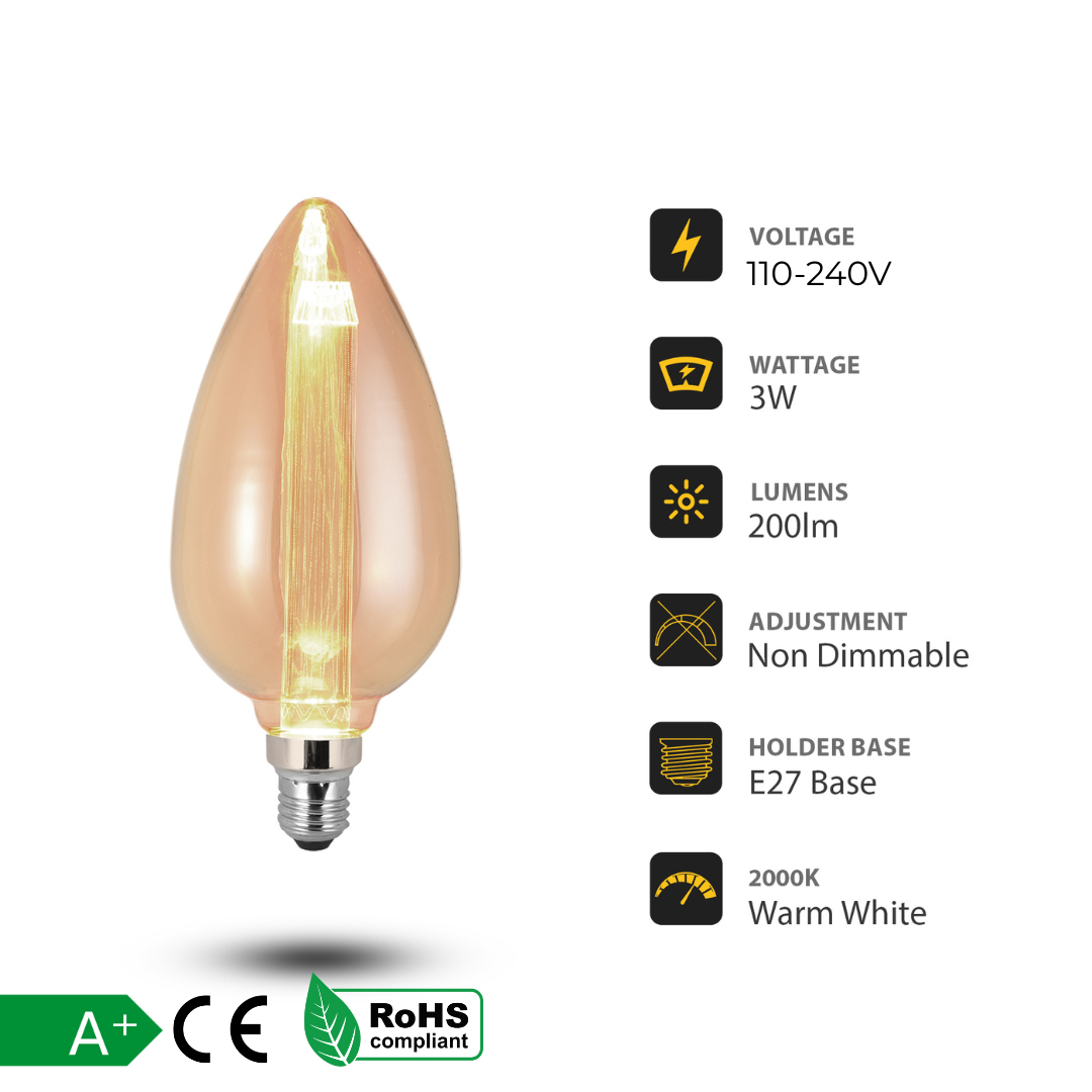 - Standaard E27-fitting voor gebruik in de meeste huishoudelijke apparaten; Vermogen: 3W; Spanning: 170-260V