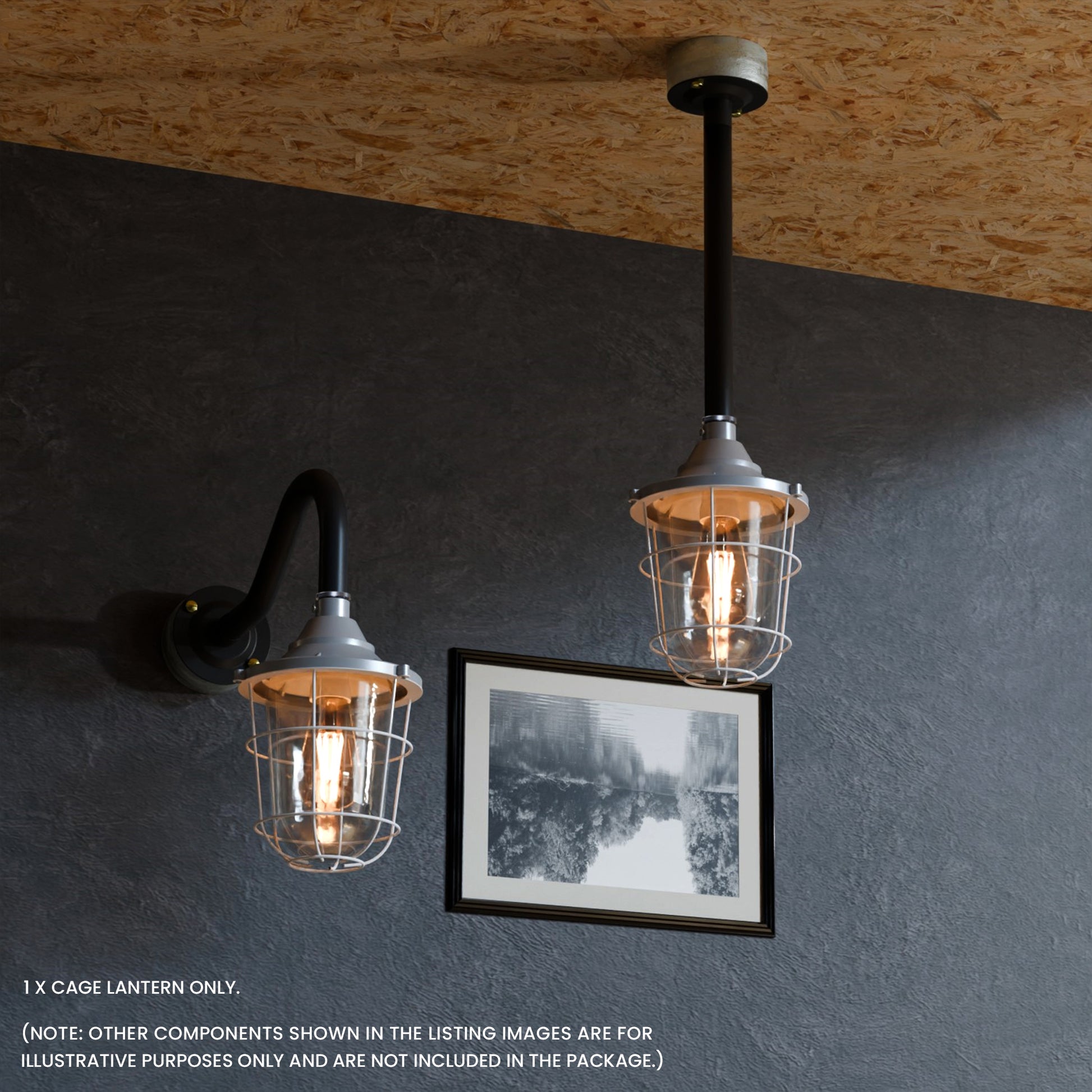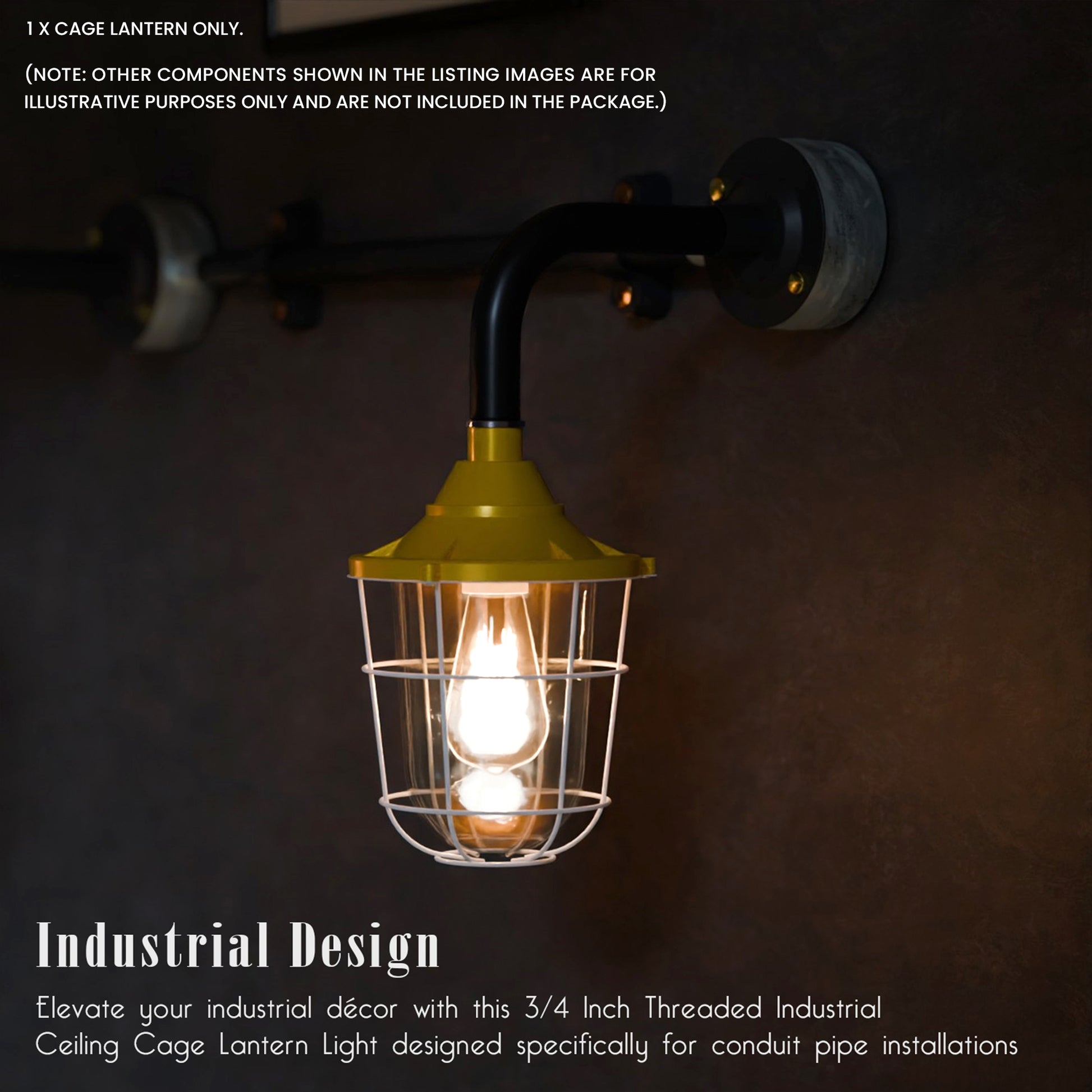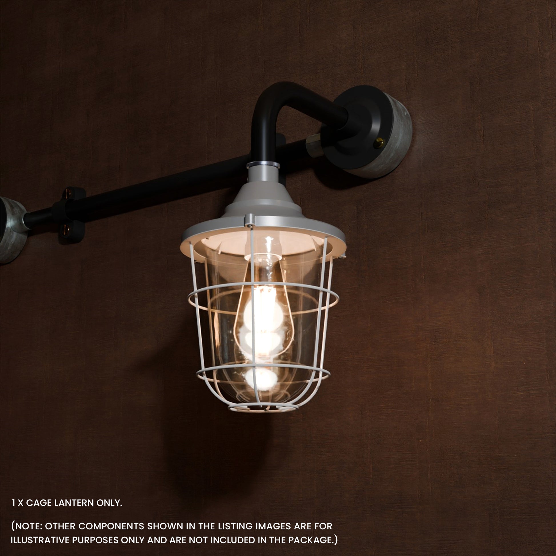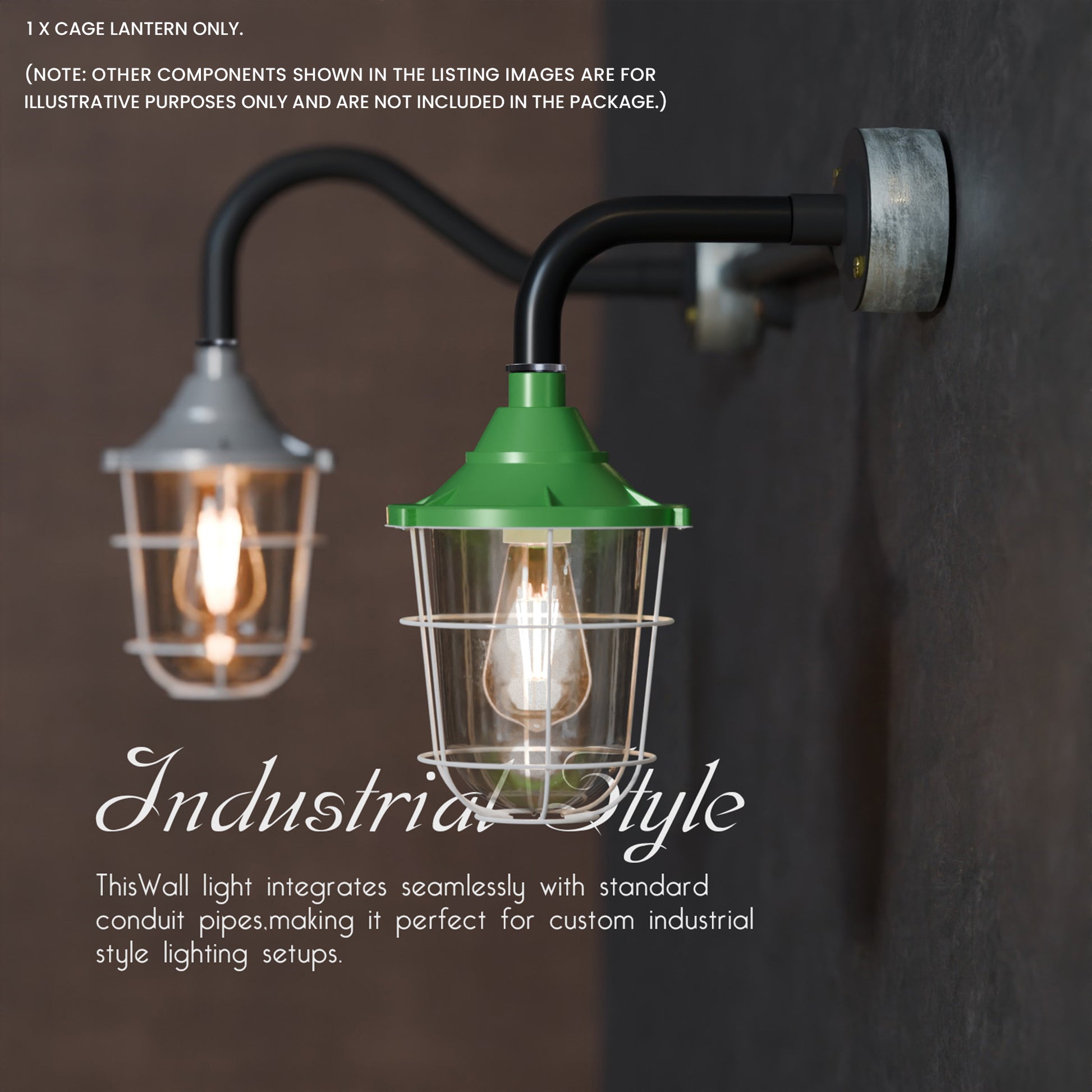 - Met matglas en een industrieel ontwerp met buisbocht. De lantaarn kan met of zonder kooi worden gebruikt voor wand- of plafondmontage, wat functionele en esthetische flexibiliteit biedt.