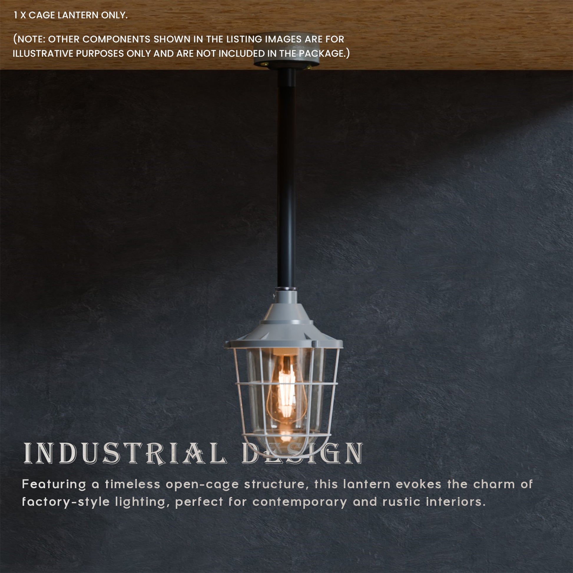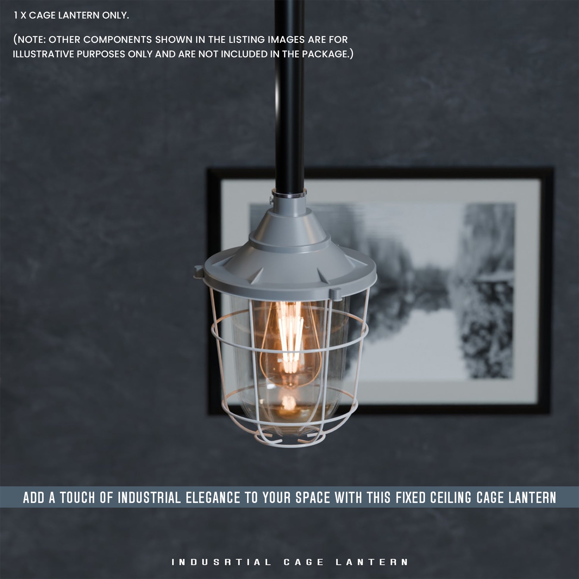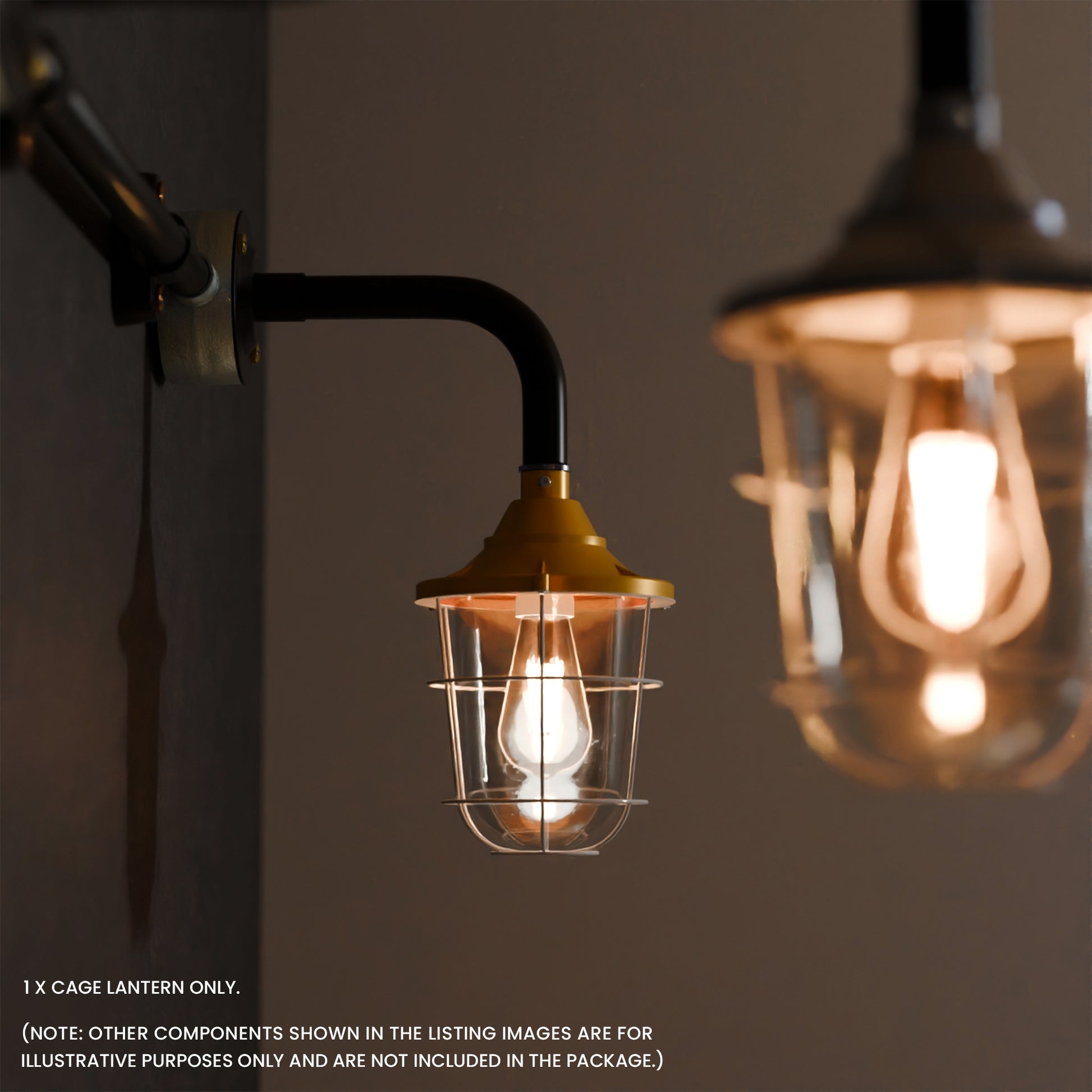 - Met matglas en een industrieel ontwerp met buisbocht. De lantaarn kan met of zonder kooi worden gebruikt voor wand- of plafondmontage, wat functionele en esthetische flexibiliteit biedt.