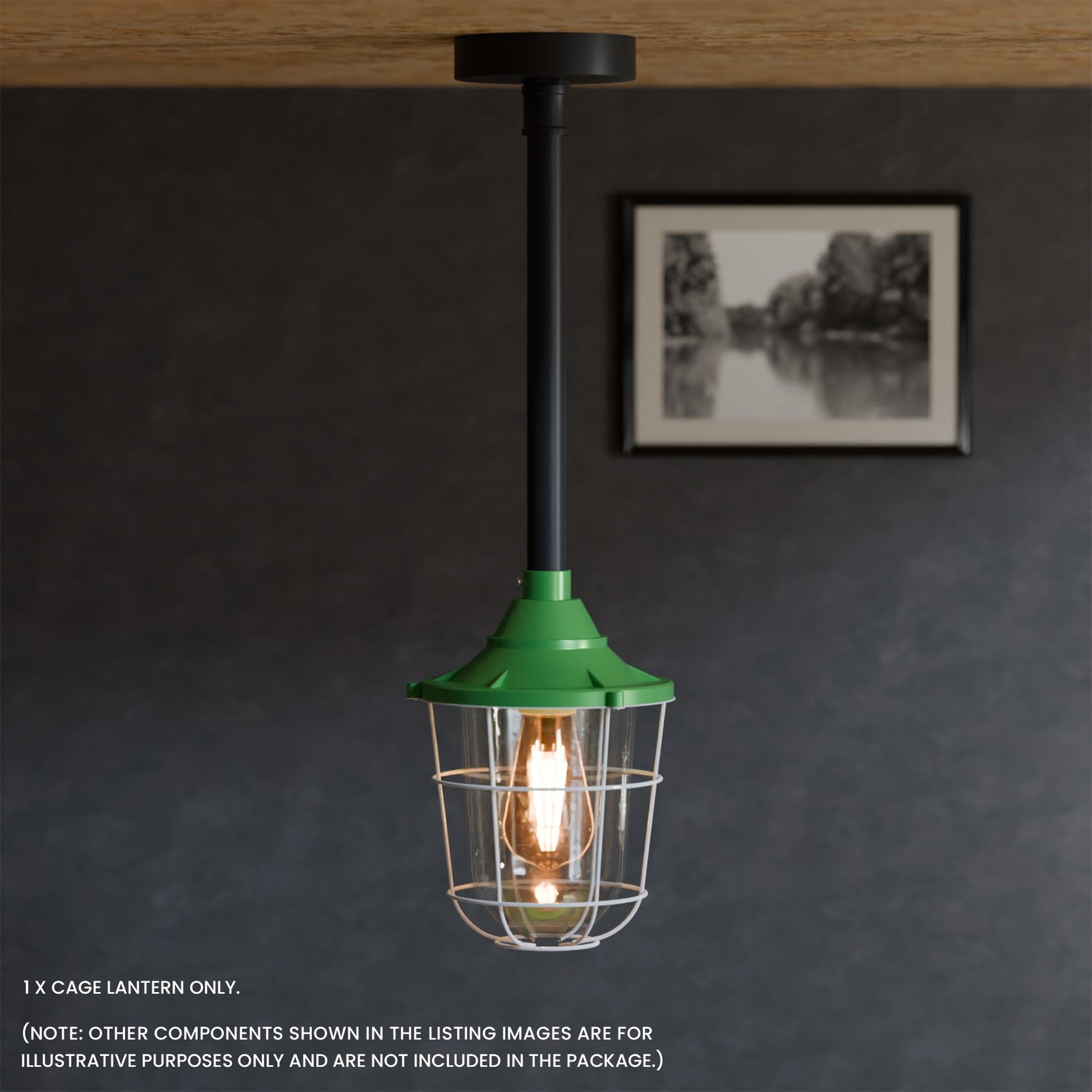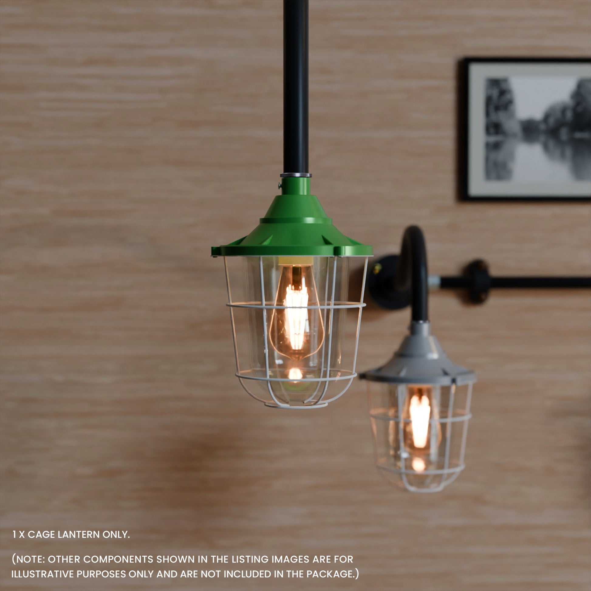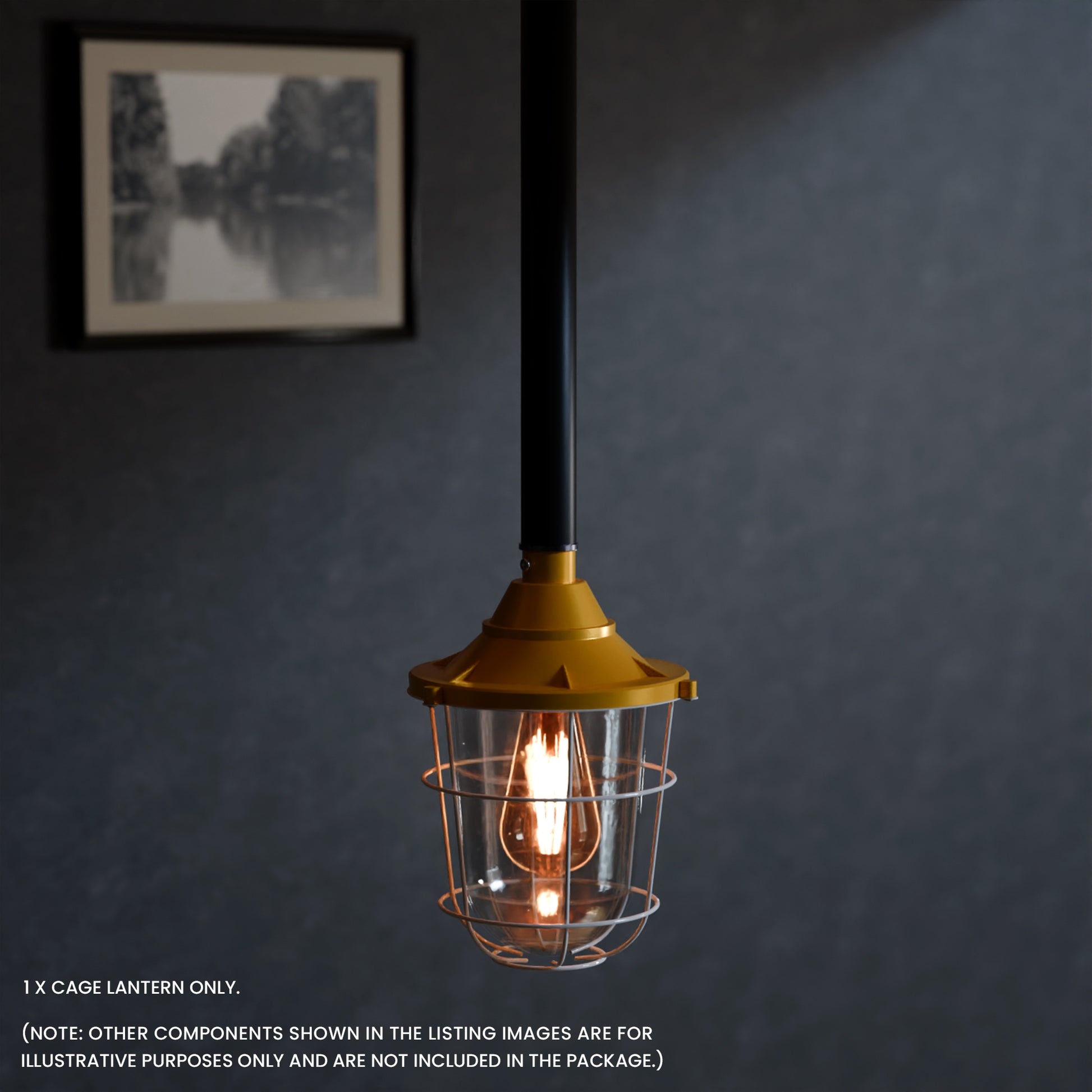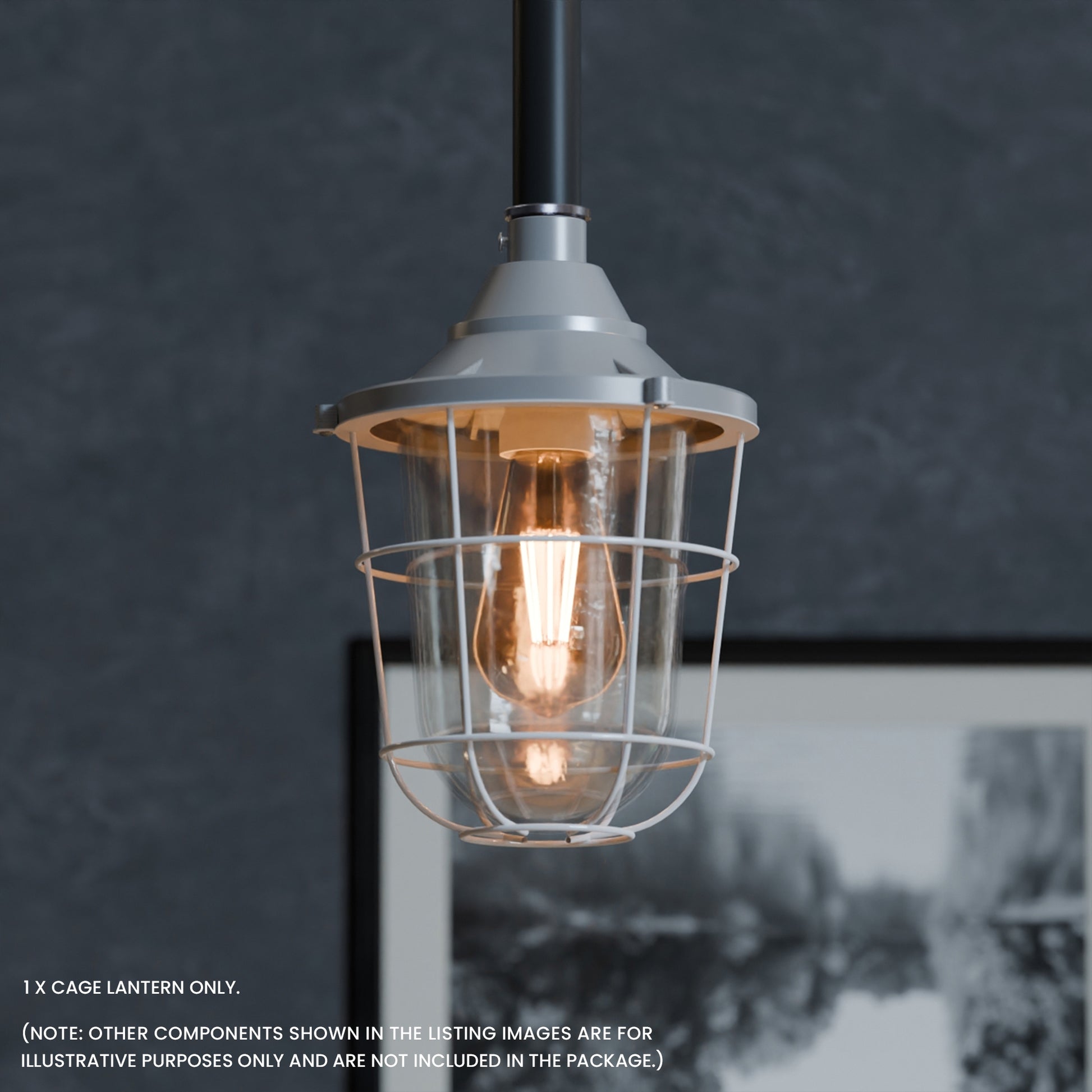 - Met matglas en een industrieel ontwerp met buisbocht. De lantaarn kan met of zonder kooi worden gebruikt voor wand- of plafondmontage, wat functionele en esthetische flexibiliteit biedt.