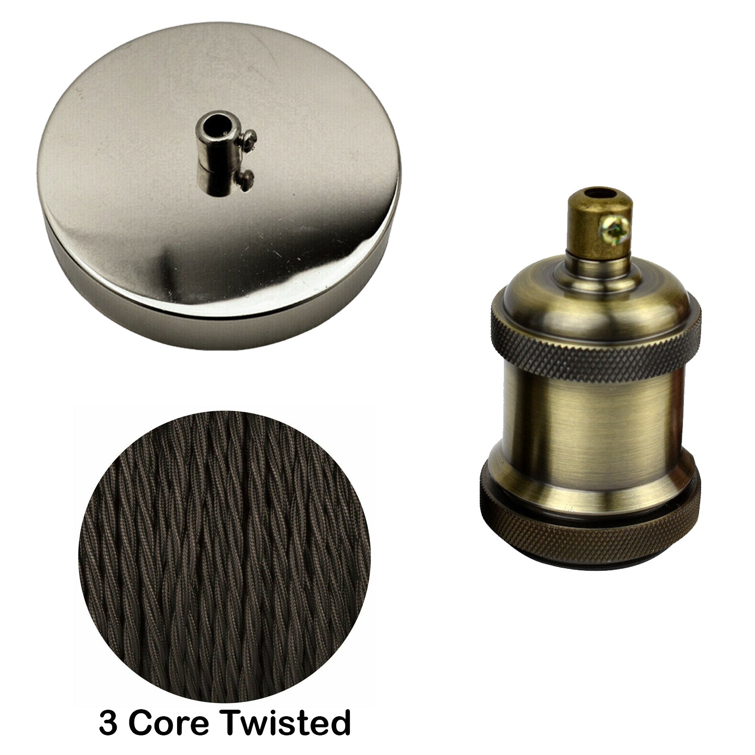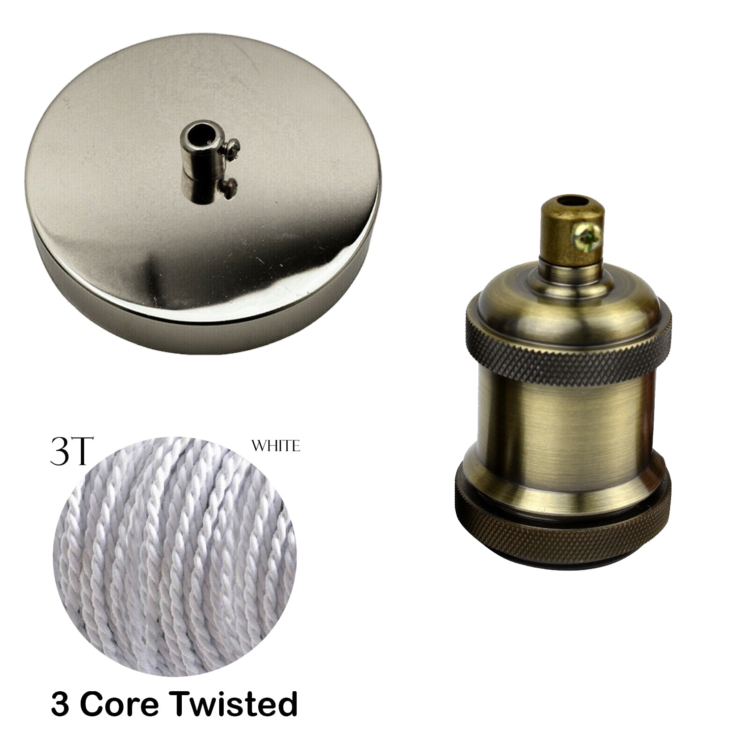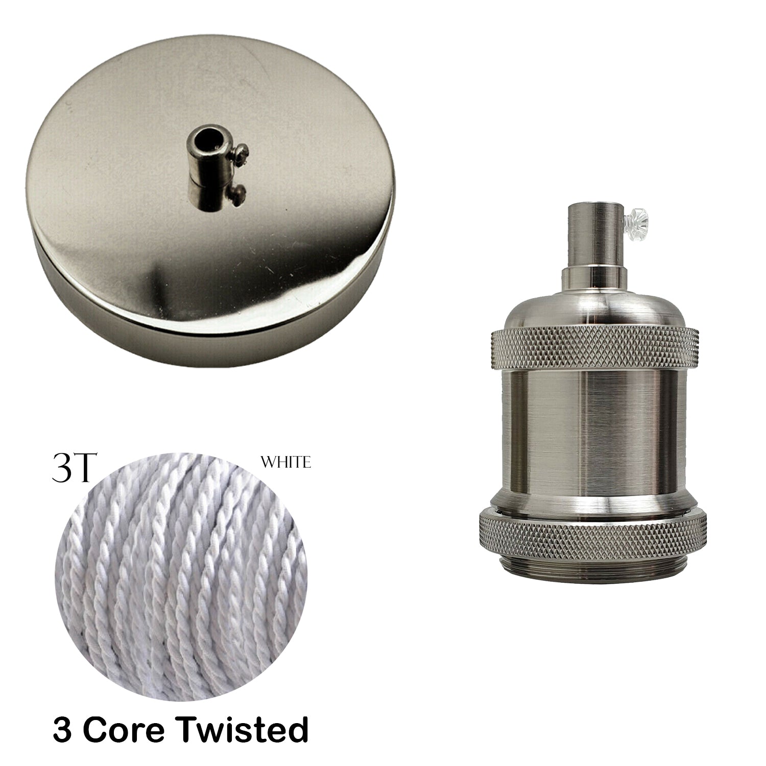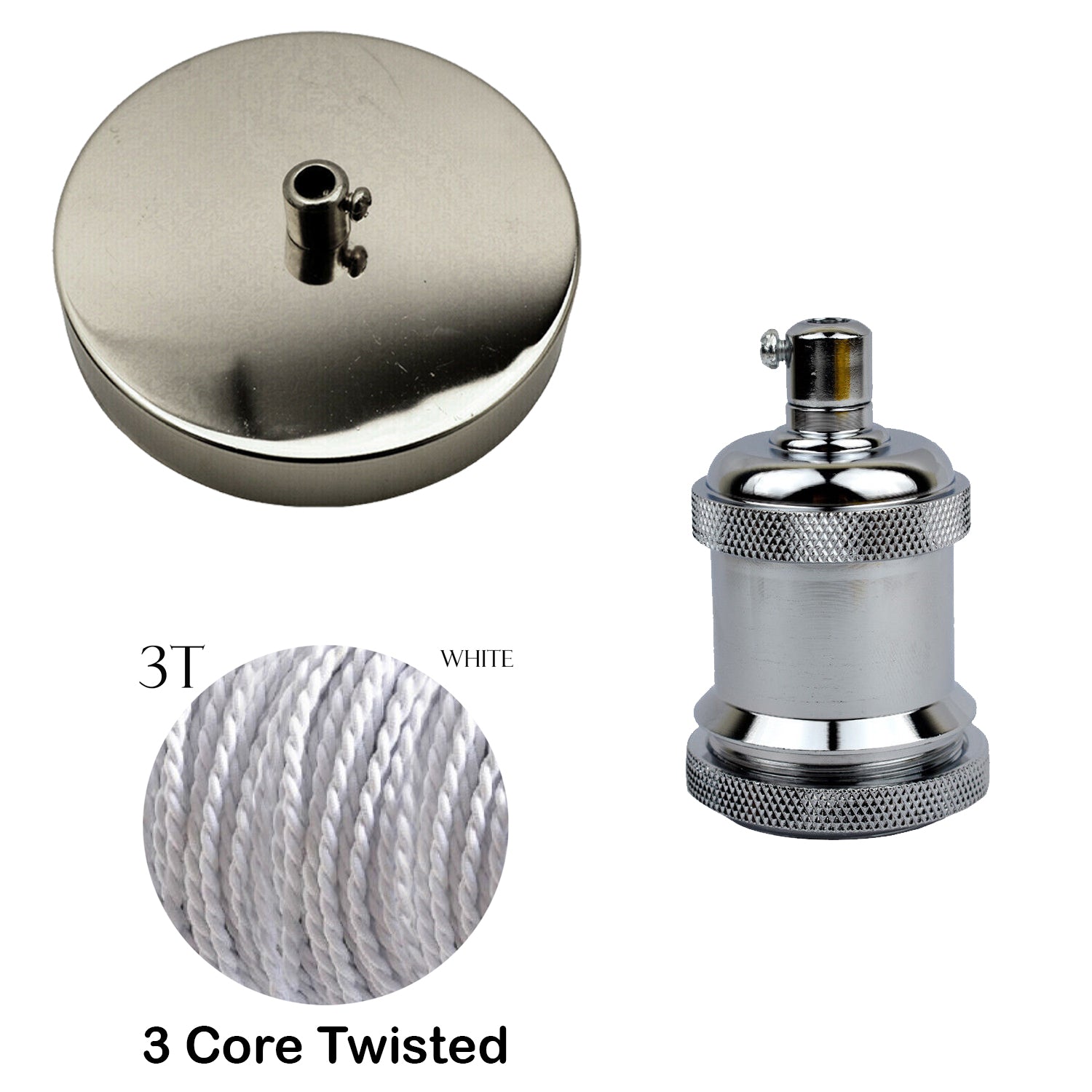 - Ronde metalen plafondrozet. Wordt geleverd met koordgrepen.