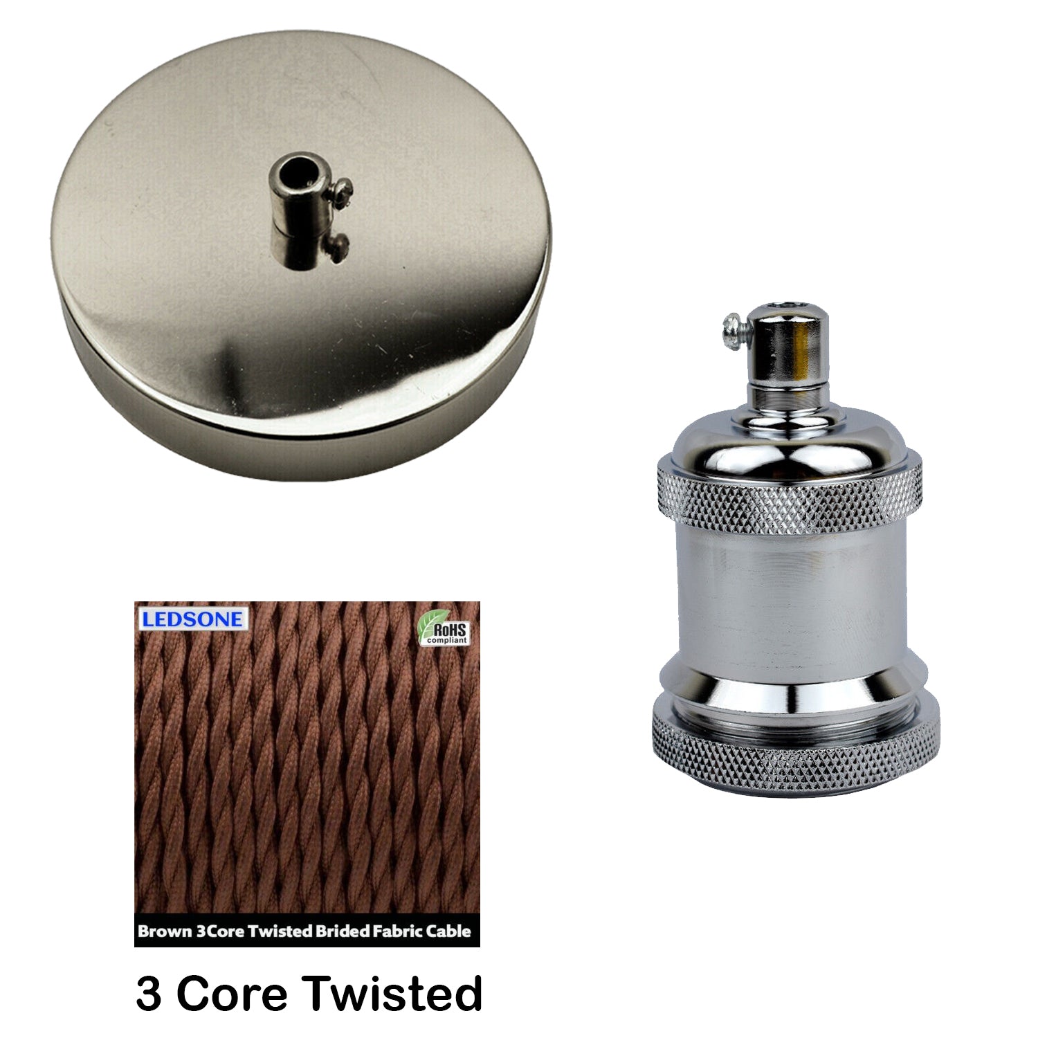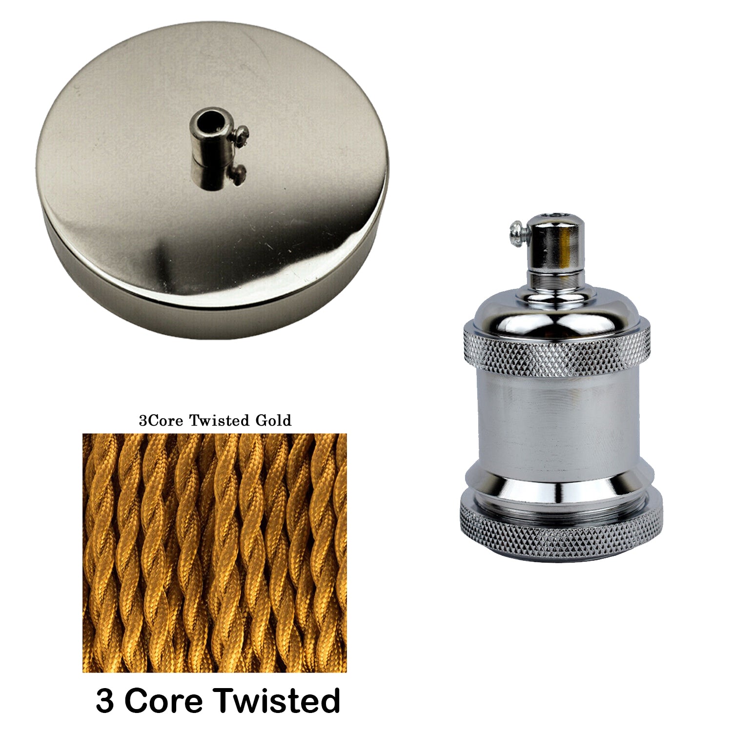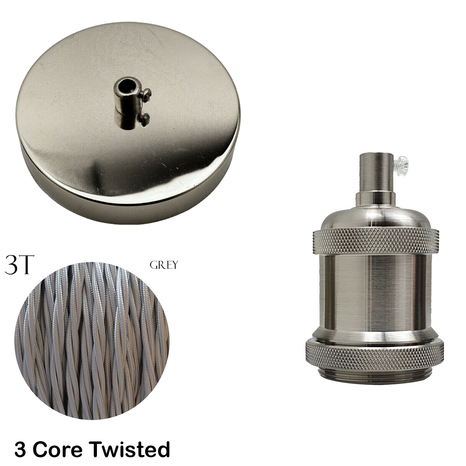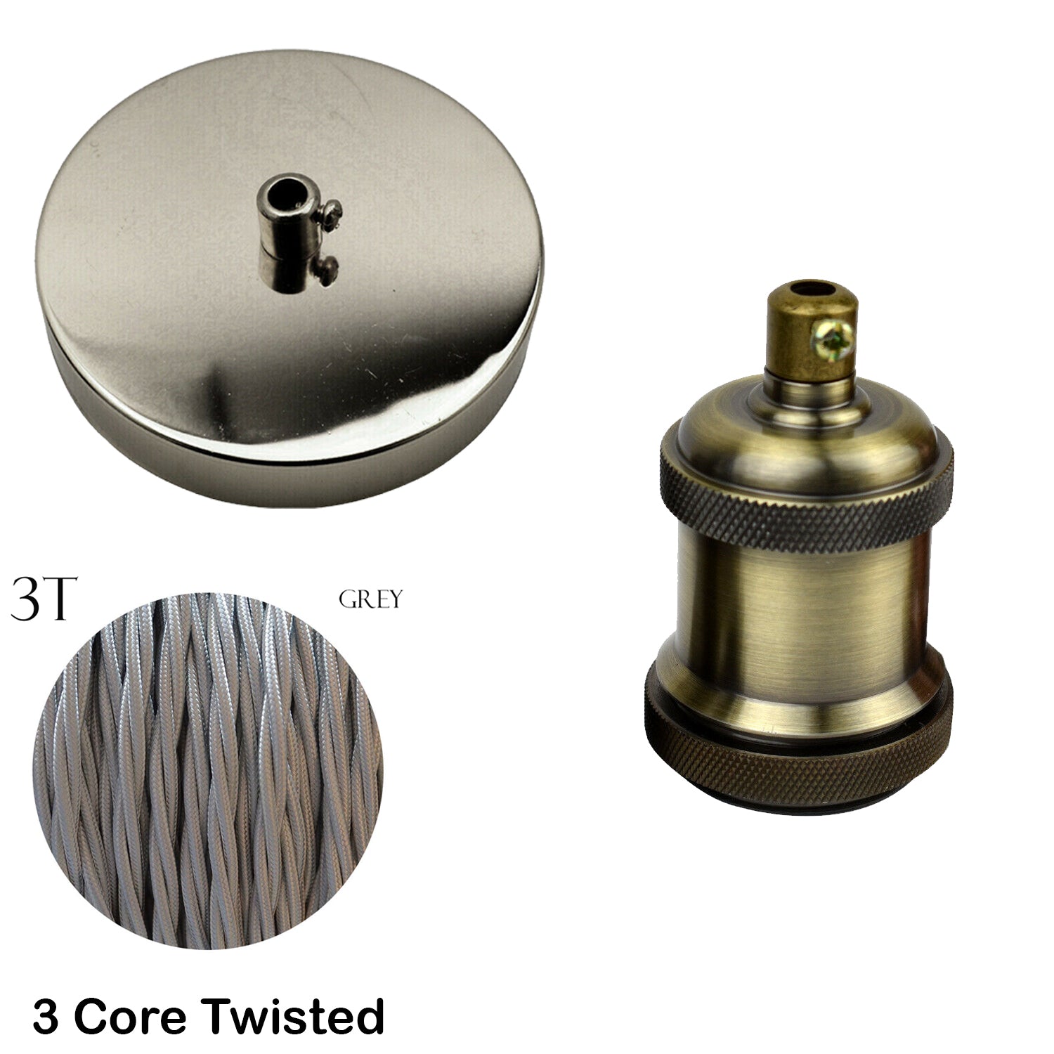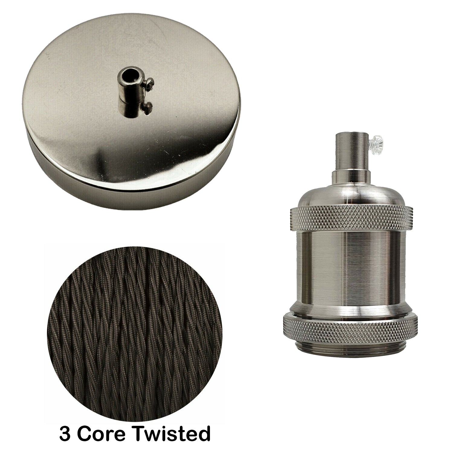 - Ronde metalen plafondrozet. Wordt geleverd met koordgrepen.