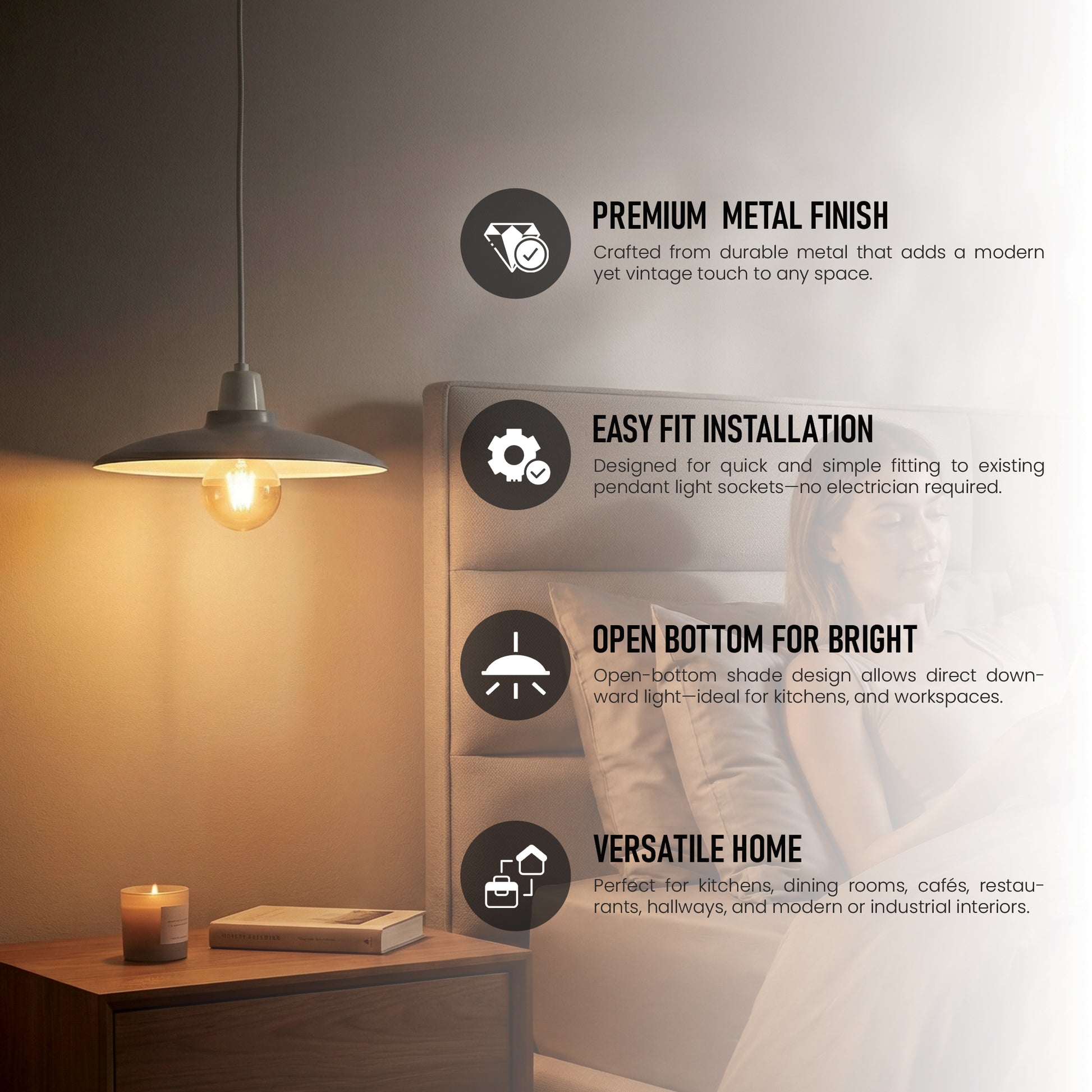 - Modern Industrial Aesthetic: The retro lamp shade style complements industrial, contemporary, and mid-century modern interiors.