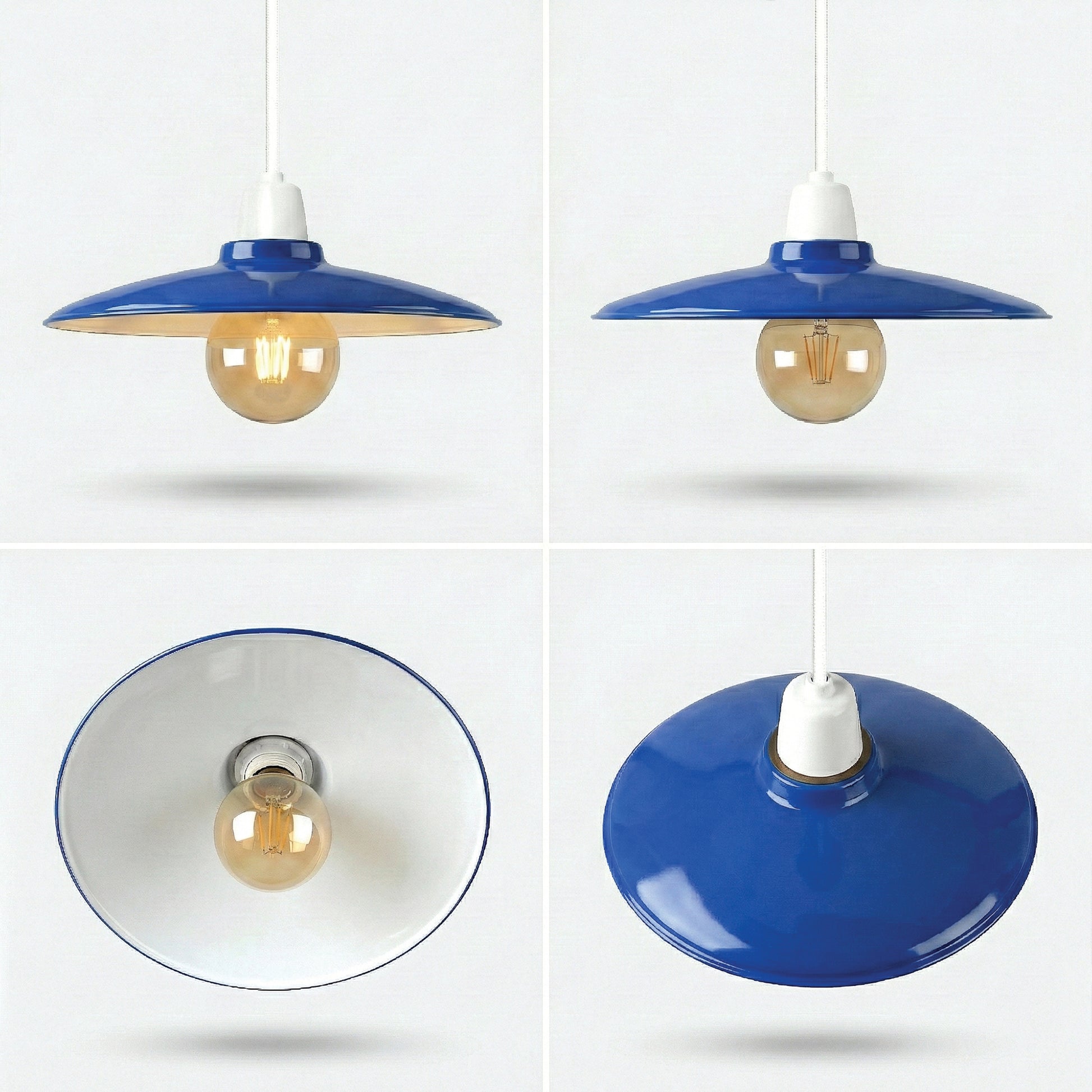 Crafted from high-quality metal with a stunning gloss blue enamel finish, this ceiling lightshade is as durable as it is stylish. The open-bottom flat cone design not only directs light downward for focused illumination but also promotes heat dissipation, making it perfect for long evenings in the dining room or busy restaurant environments.