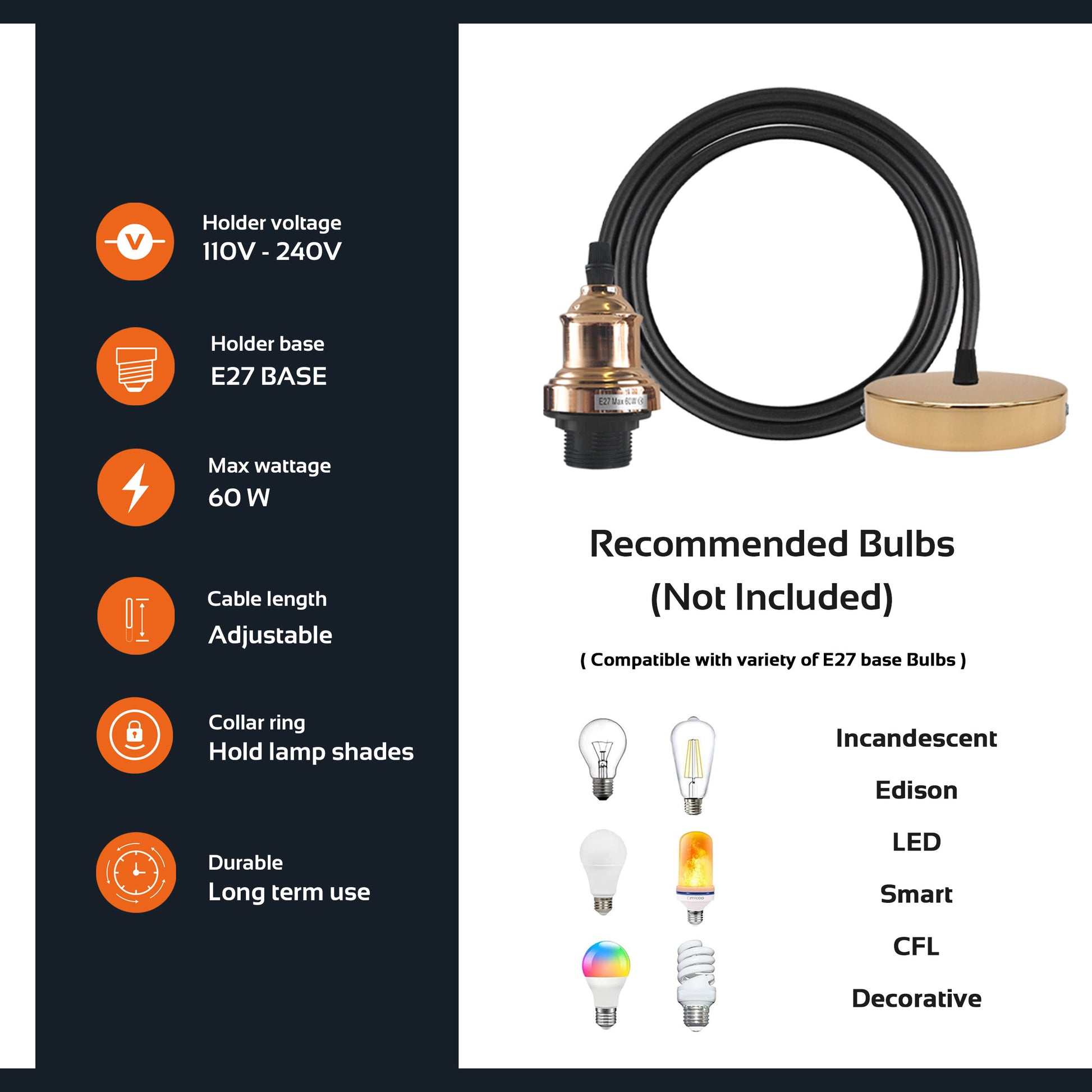 - De lamphouder moet geschikt zijn voor de E27-fitting. Dit is een gangbare en standaardmaat voor gloeilampen, zodat gebruikers eenvoudig lampen kunnen vinden en vervangen.