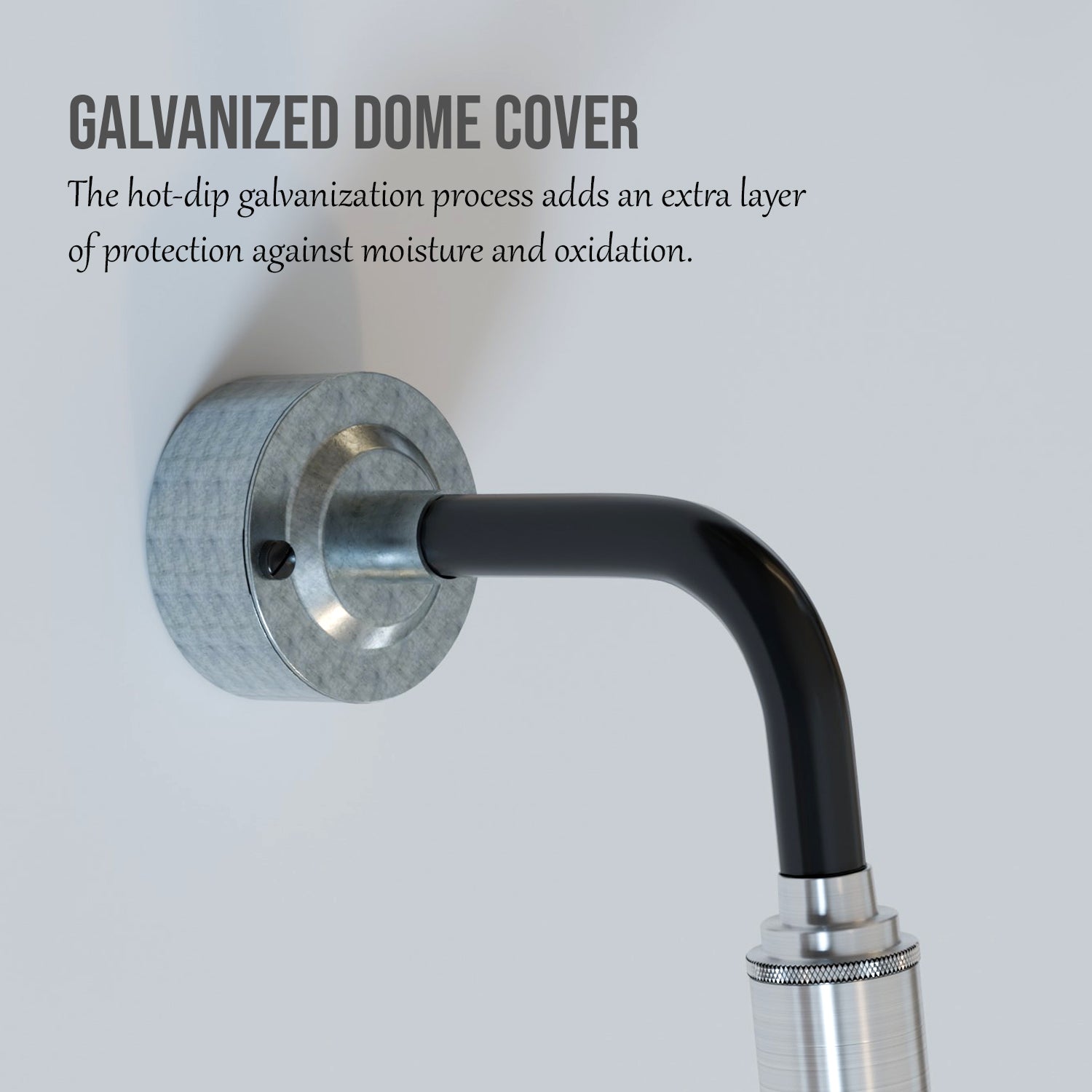- Deze koepelafdekking is gemaakt van zeer sterk gegalvaniseerd staal, wat zorgt voor een lange levensduur en bestendigheid tegen slijtage, roest en zware omgevingsomstandigheden.