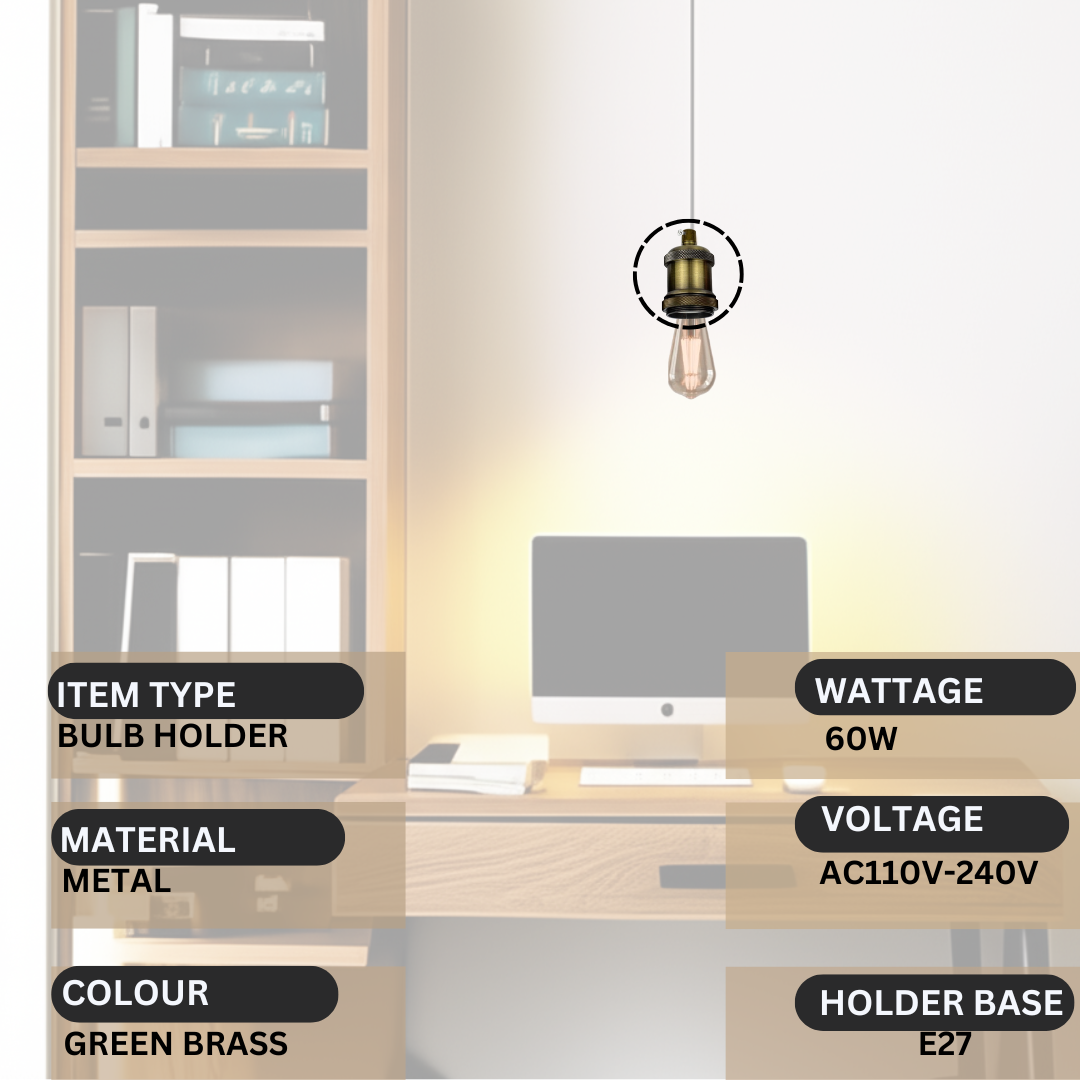 Groene messing E27 metalen lamphouder, ideaal voor vintage Edison-gloeilampen. Antiek metaal~2933