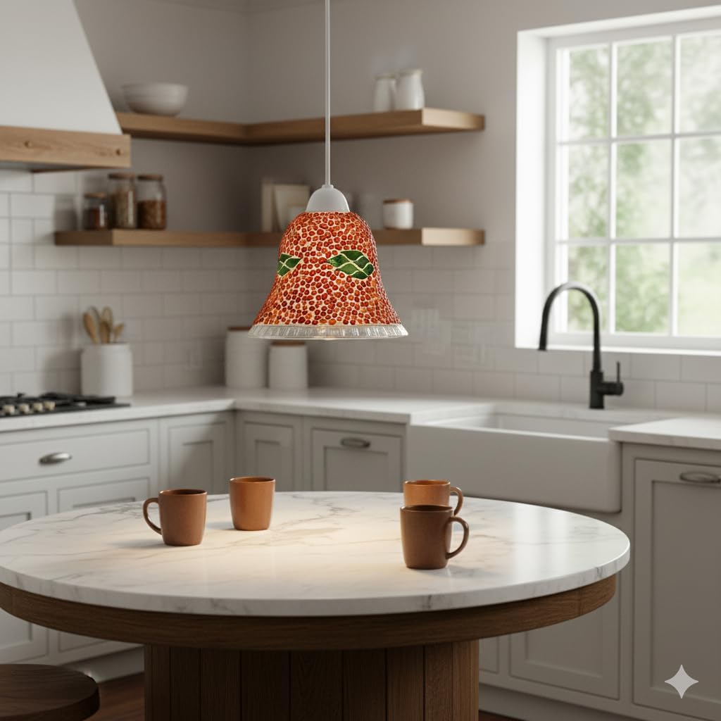 - De lampenkap is handgemaakt en geeft het mozaïekglas een uniek karakter. De glas-in-loodstukken zijn met zorg samengesteld om een visueel aantrekkelijk en artistiek werk te creëren.