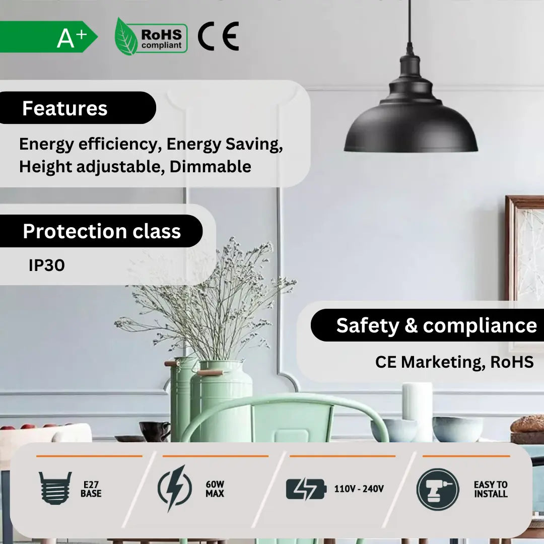 - Een hanglamp + lamphouder + plafondrozet (lamp niet inbegrepen)
