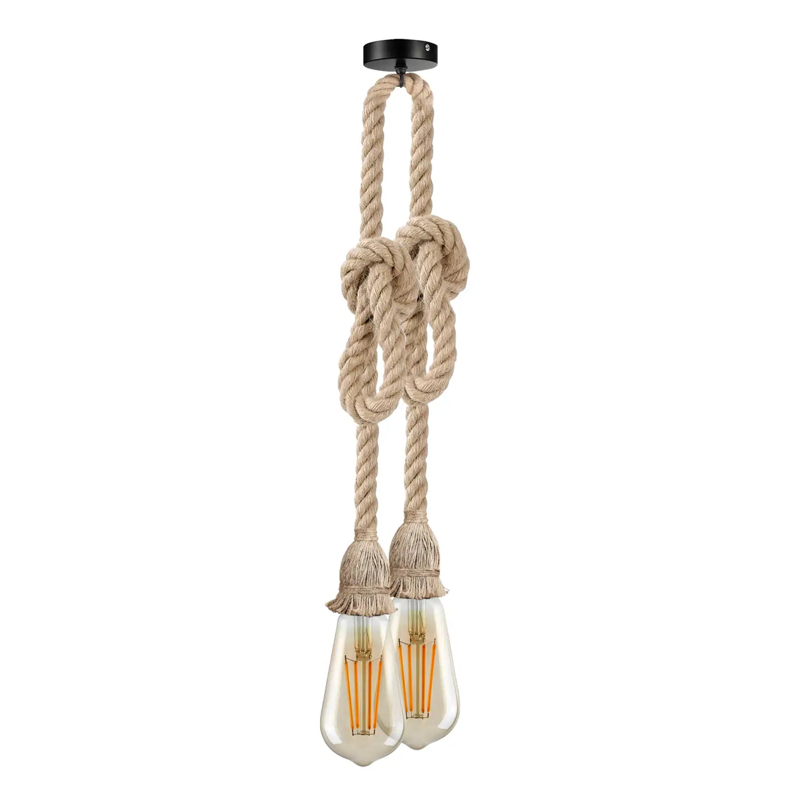 - Stijlvolle, vintage hanglamp met een gedraaide kabel bekleed met henneptouw, ideaal voor interieurdecoratie.