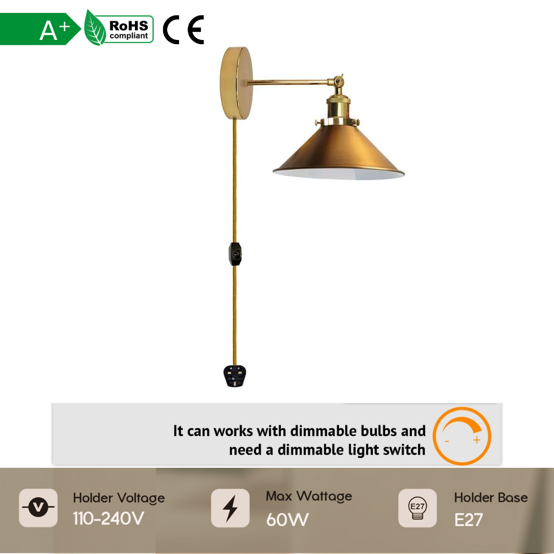 Belangrijkste kenmerken- Eenvoudige installatie : De lamp is voorzien van een plug-in wandlamp in Brits design, waardoor de installatie snel en eenvoudig is. Er is geen vaste bedrading nodig.