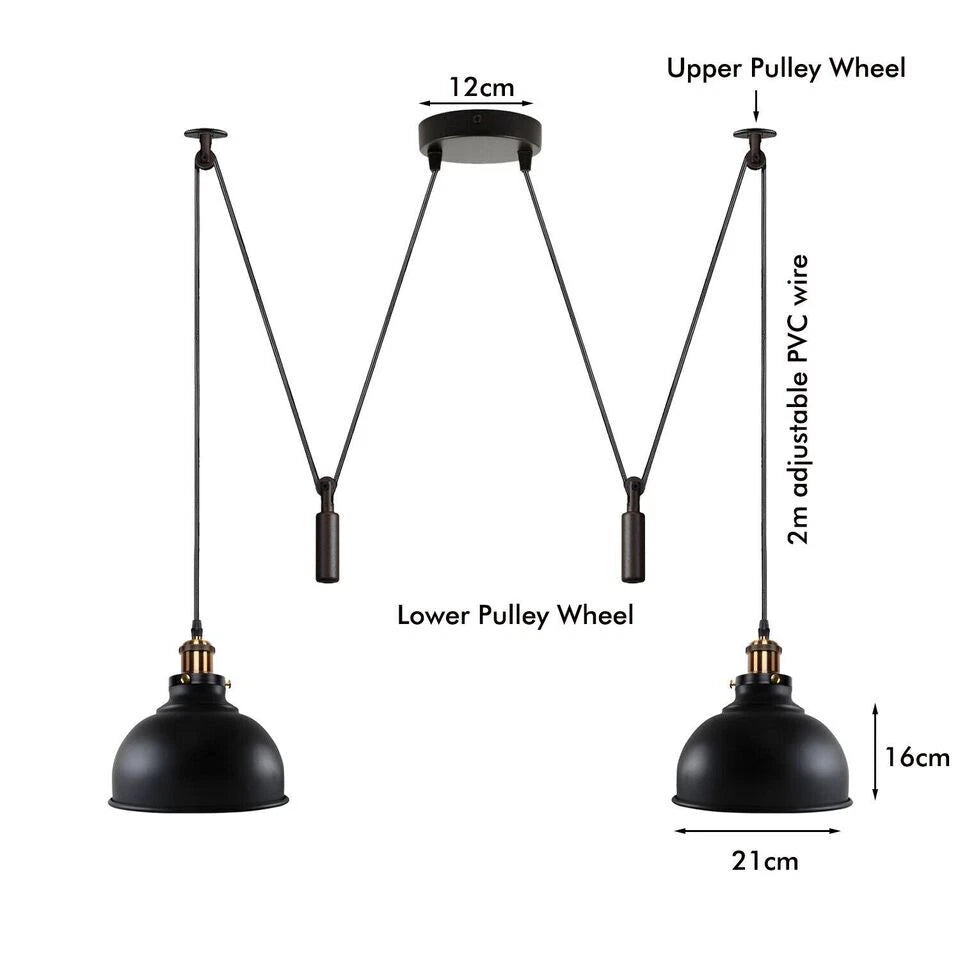 - Transform your space with the Fluming Double Pulley Pendant Light, a perfect blend of industrial-retro design and vintage-modern functionality.