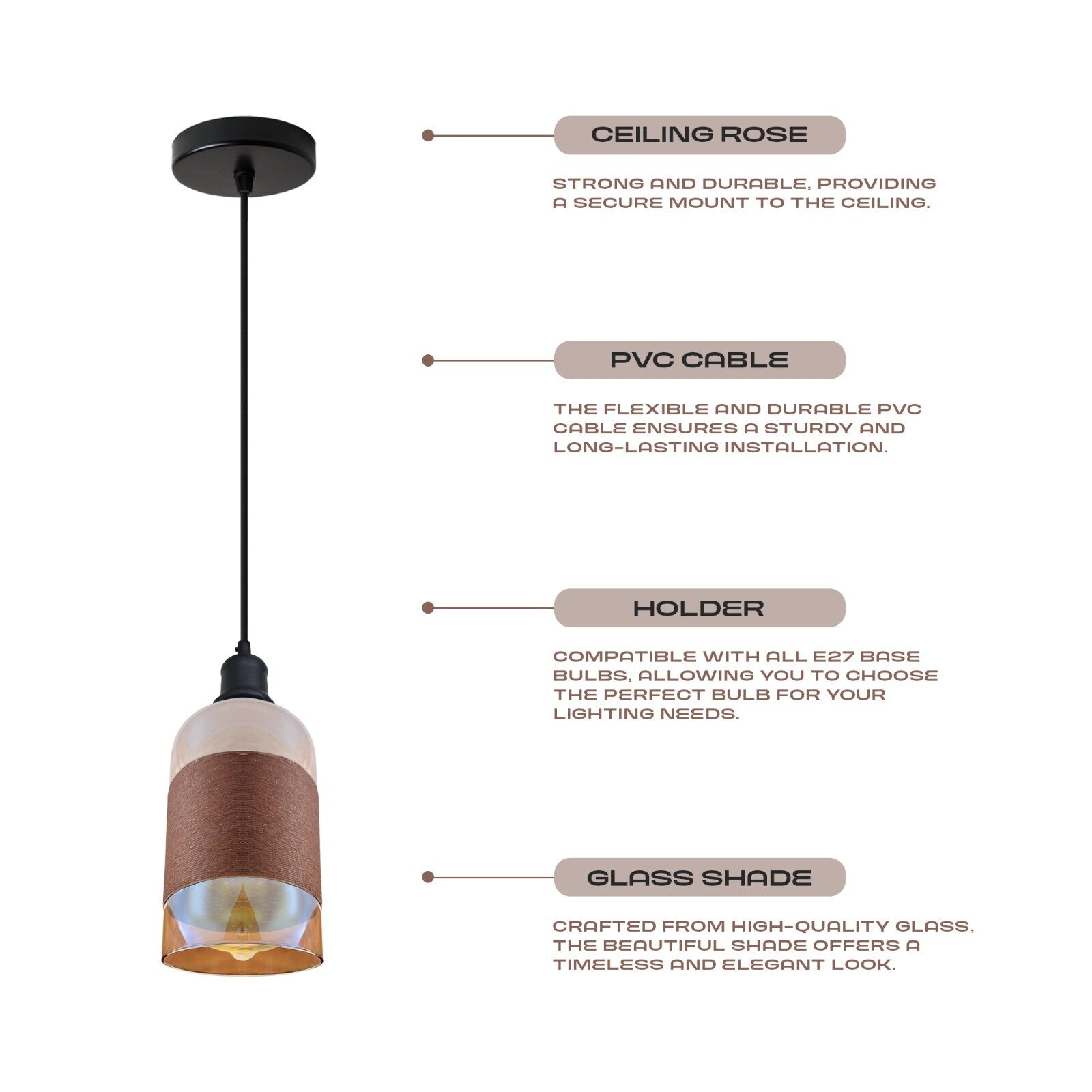 - Materials: Glass Shade, PVC Cable, Metal Lamp Holder