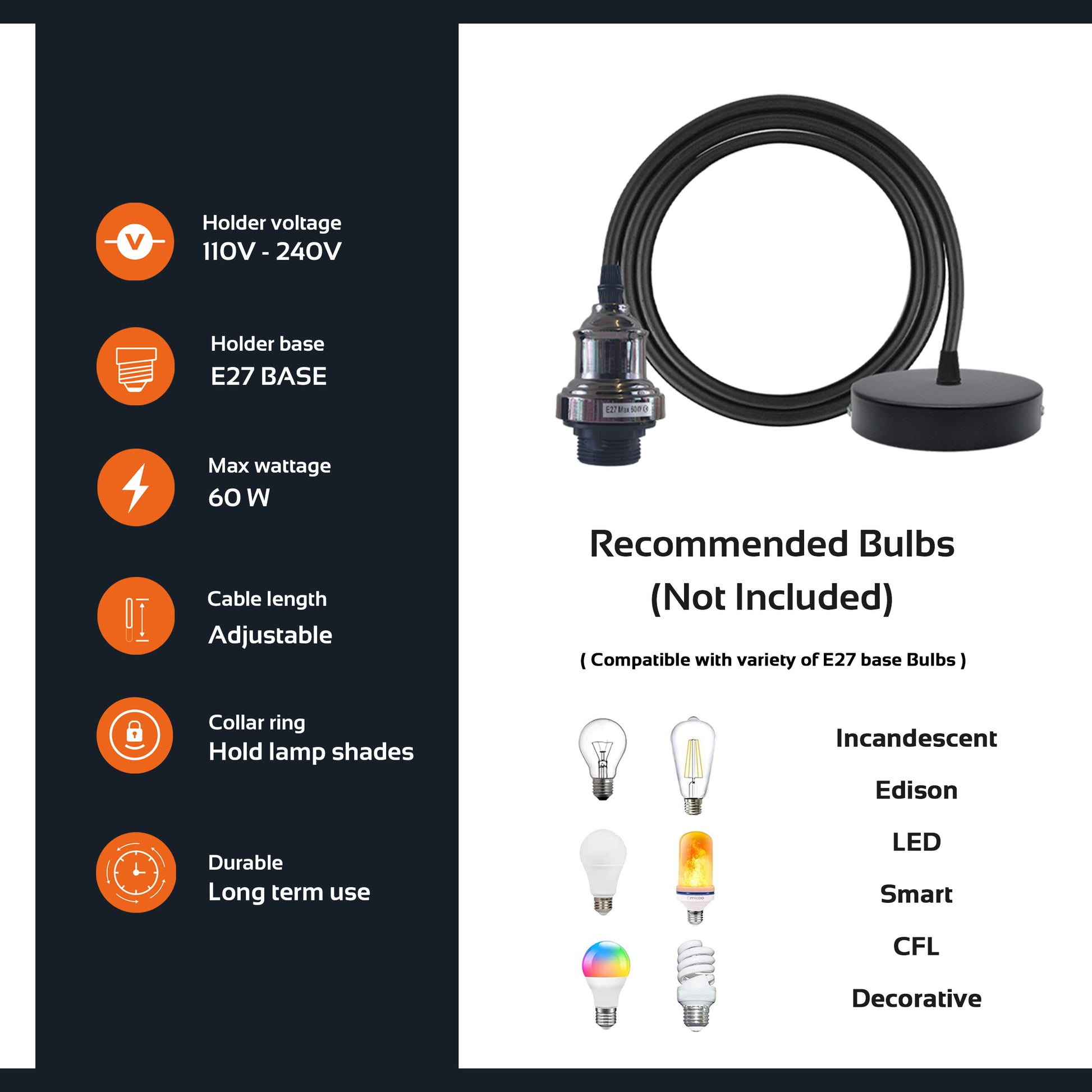 - De lamphouder moet geschikt zijn voor de E27-fitting. Dit is een gangbare en standaardmaat voor gloeilampen, zodat gebruikers eenvoudig lampen kunnen vinden en vervangen.