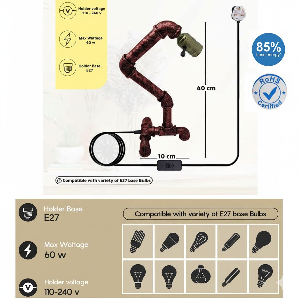 - Lampfitting: E27 (Edison-stijl) 220V-250V, max. 100 Watt