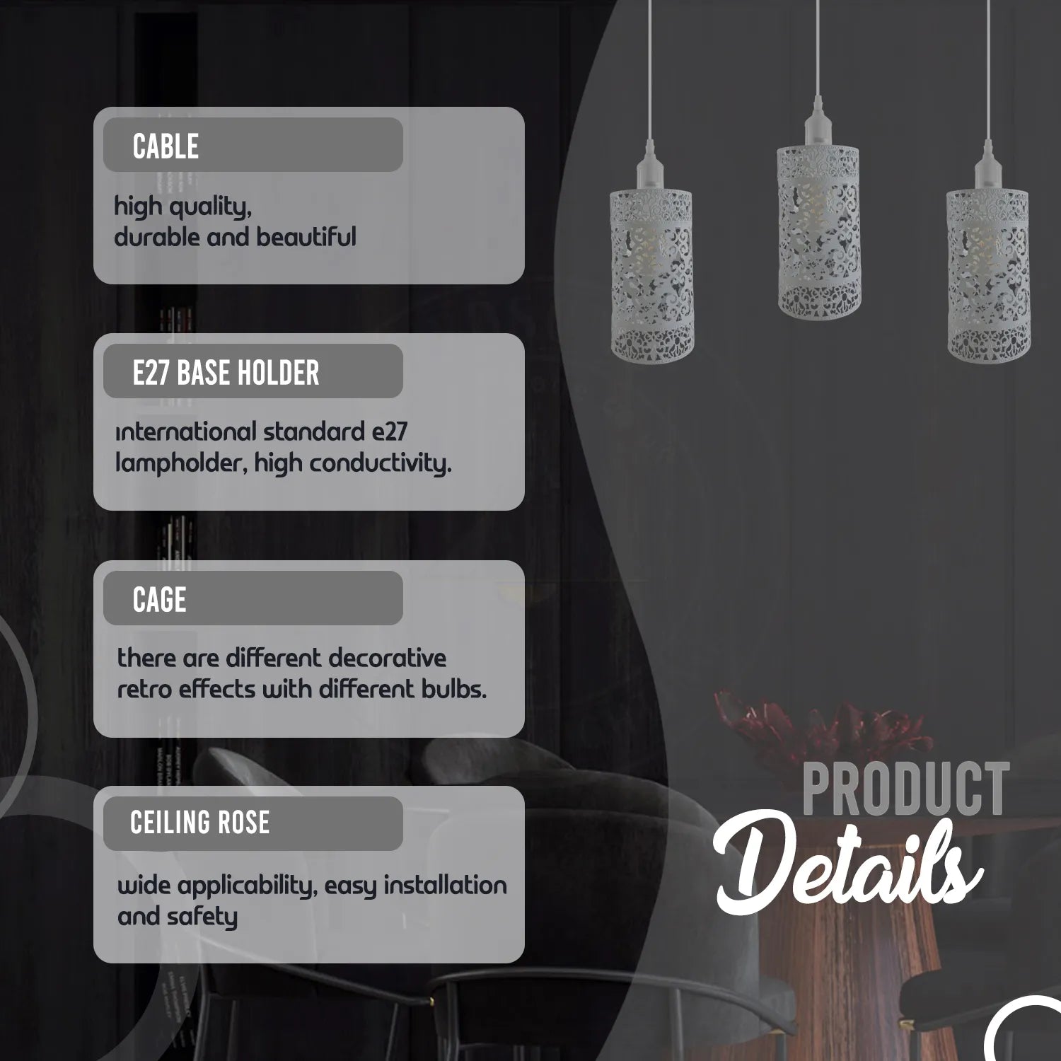 Industriële hanglamp, verstelbare E27 metalen kooi hanglampen ~4319