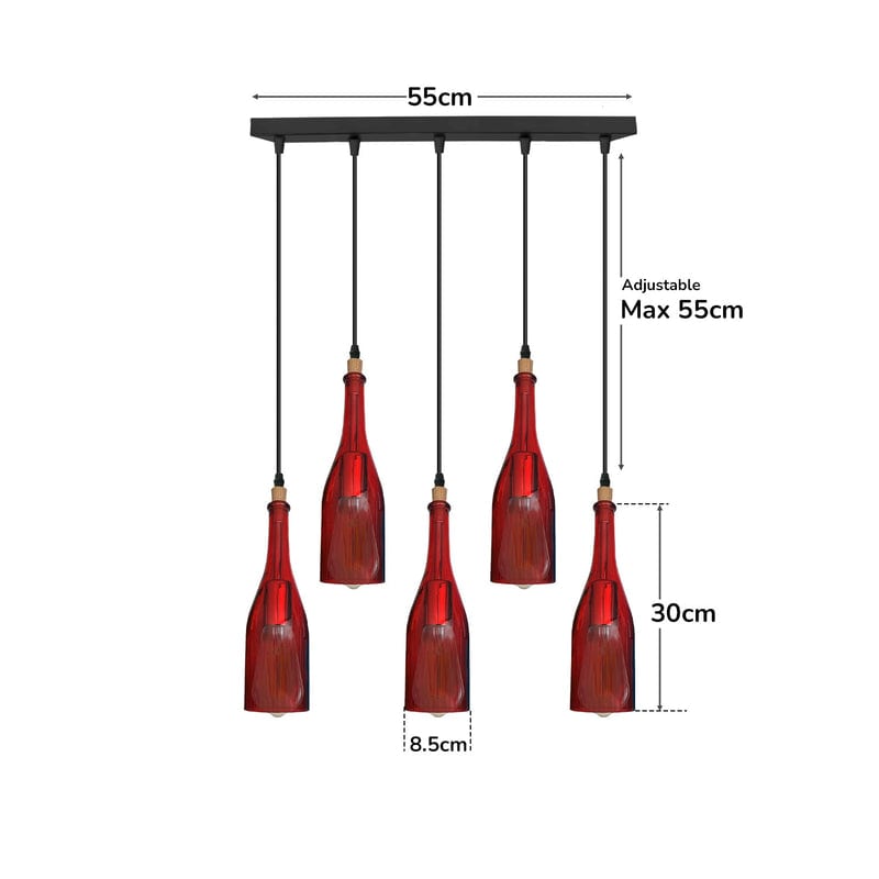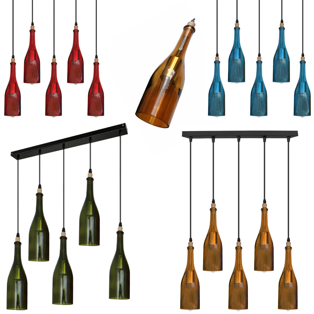 1 x 5 glazen wijnfles hanglamp plafondlamp (geselecteerde kleur)