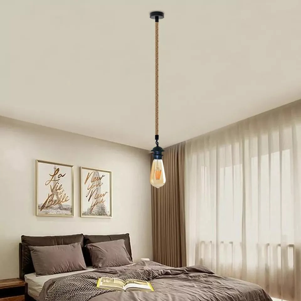 Industriële vintage metalen hanglamp van henneptouw