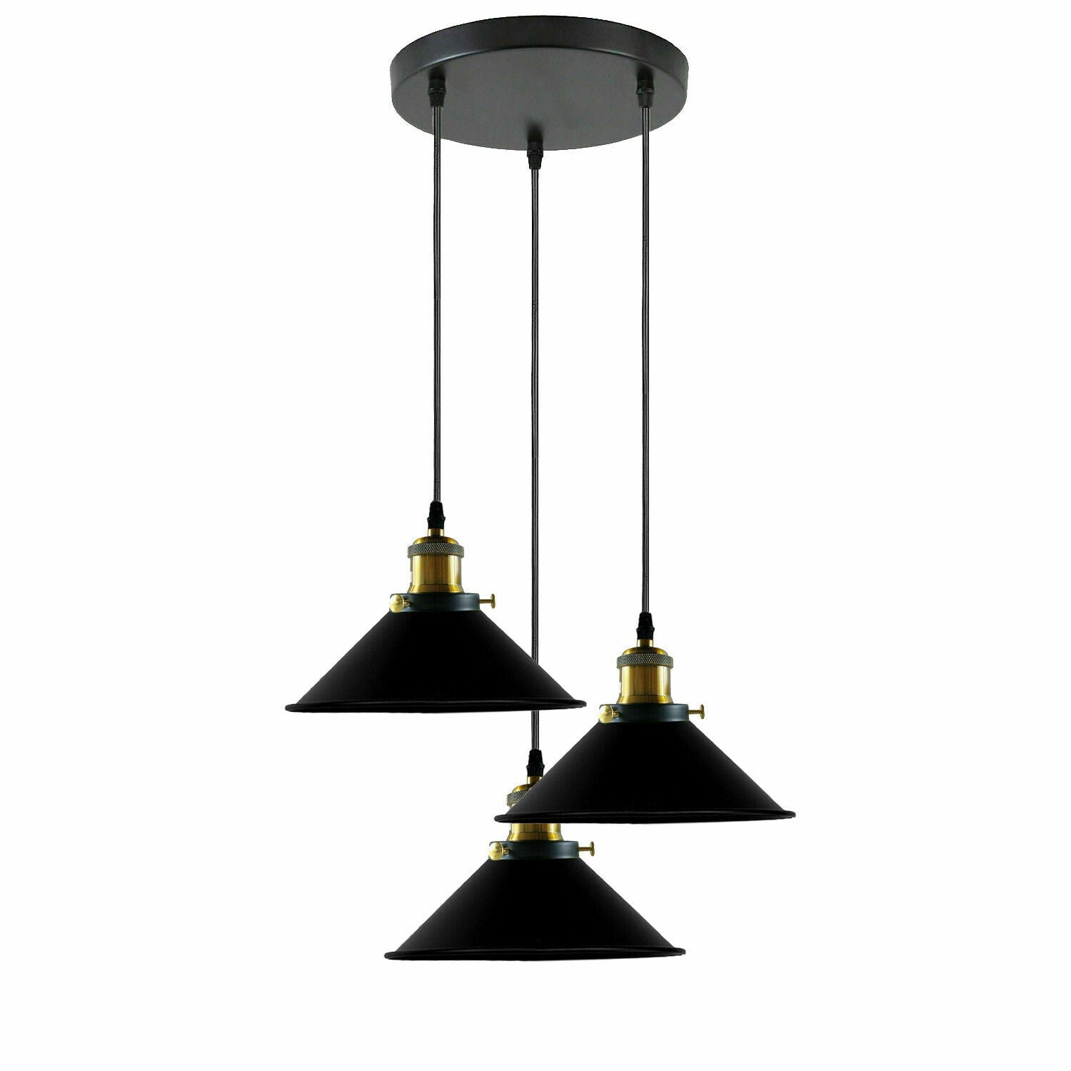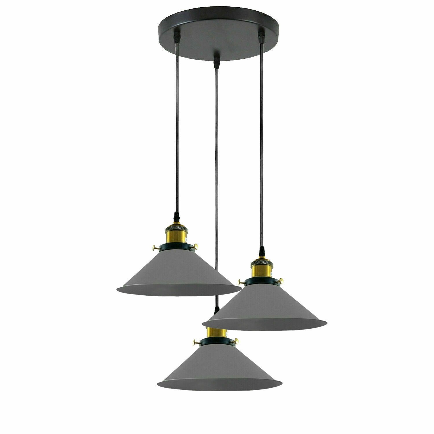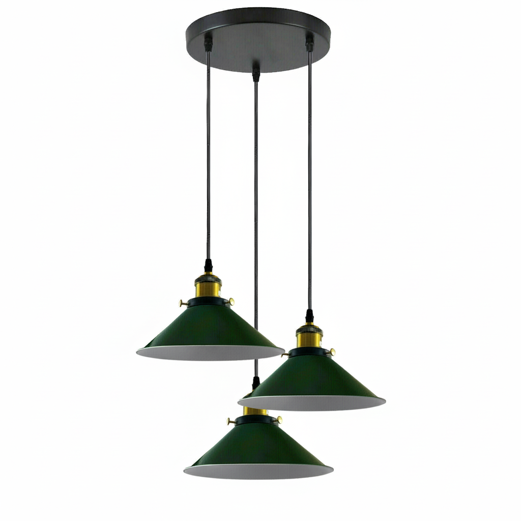 Industriële plafondlamp met 3 koppen en metalen kegelvormige kap ~3868