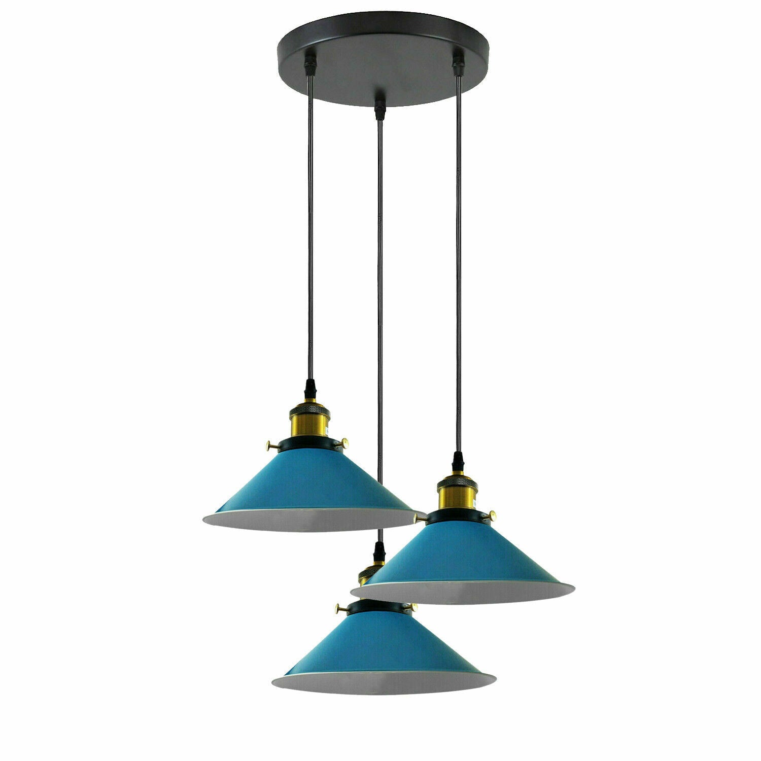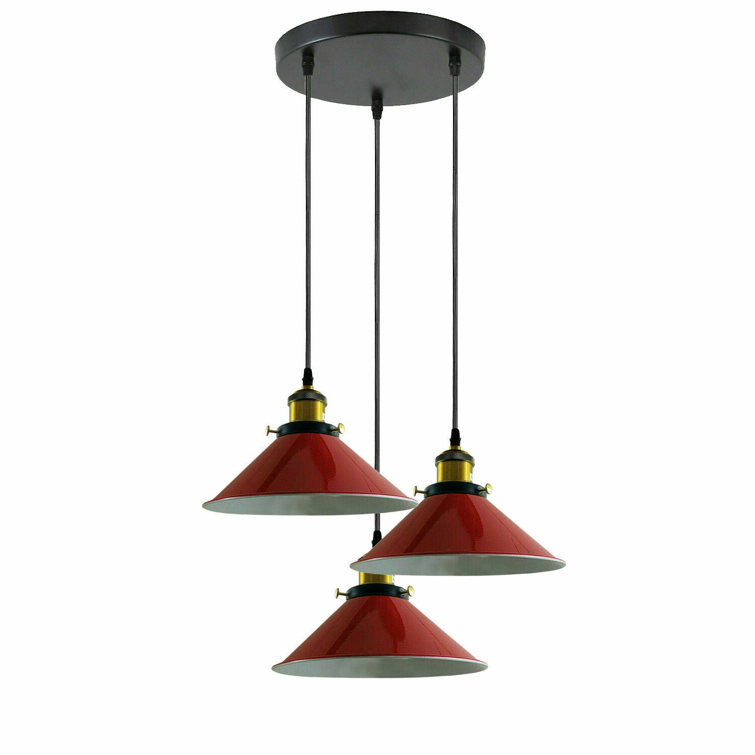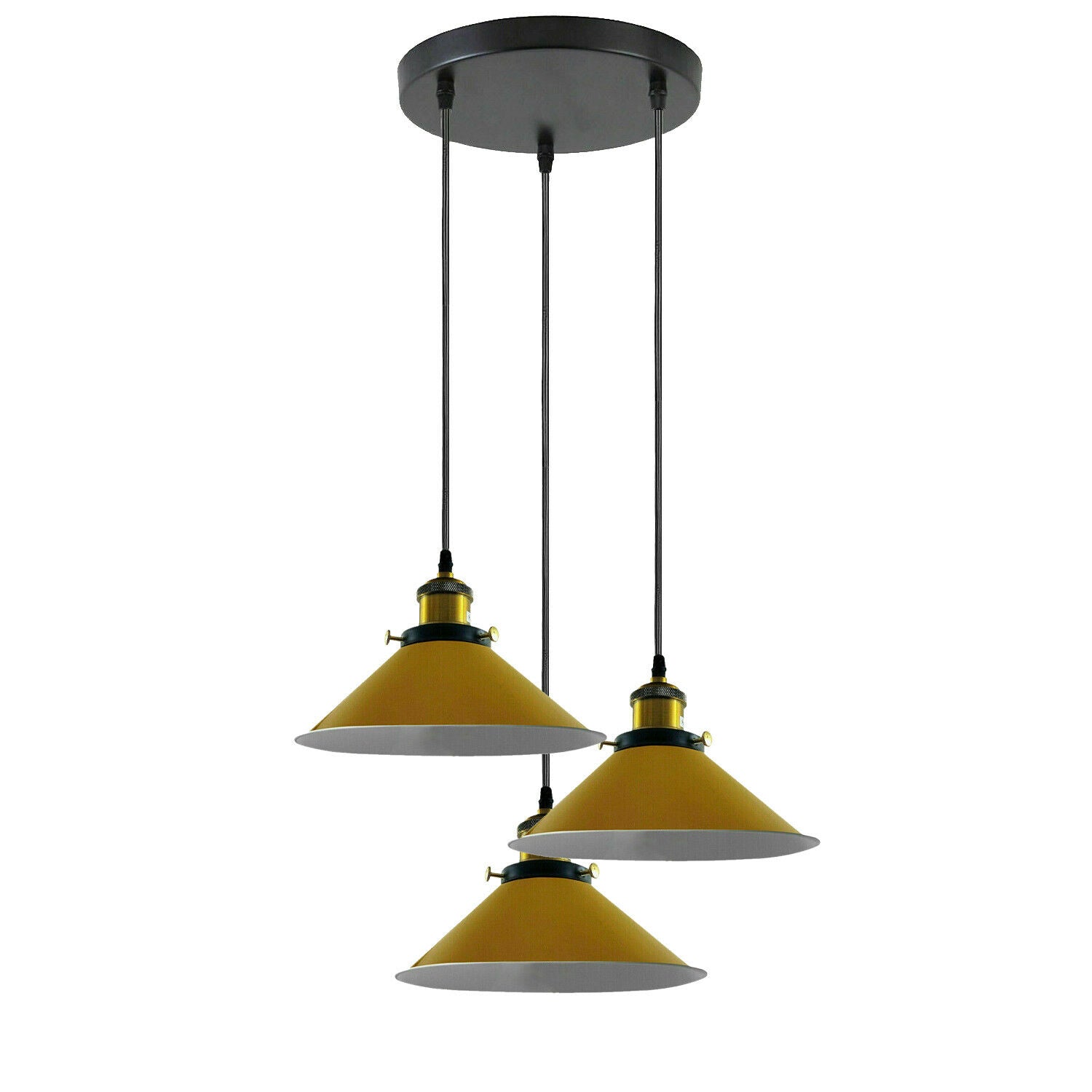 Industriële plafondlamp met 3 koppen en metalen kegelvormige kap ~3868