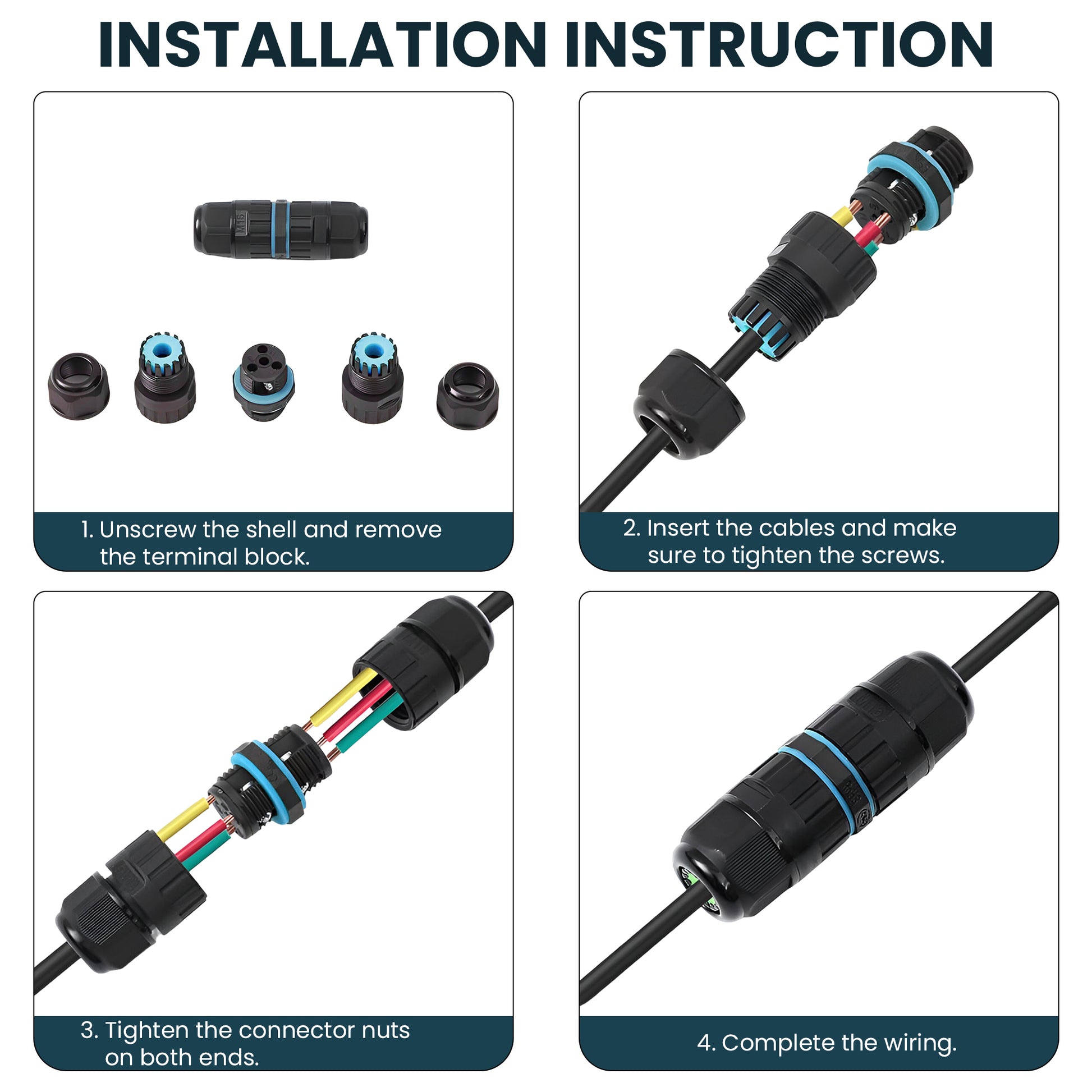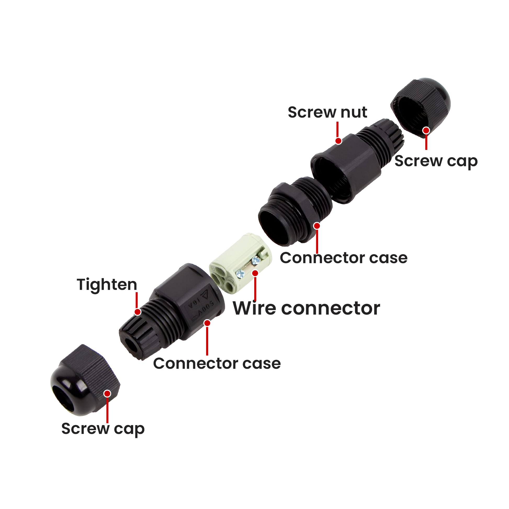 - Buitenkabelconnectoren zijn gemaakt van hoogwaardige materialen.