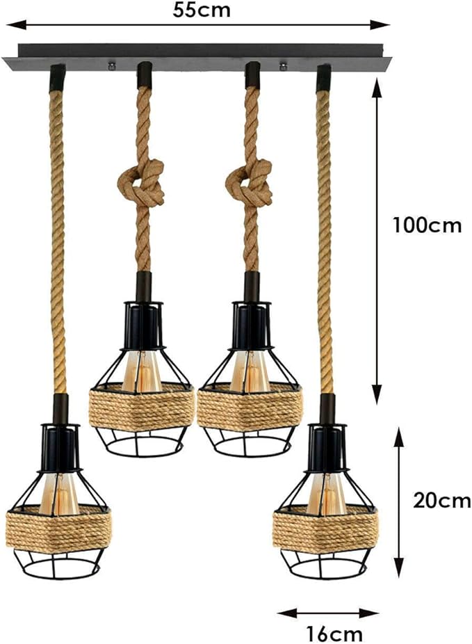 - Stijlvolle, vintage hanglamp met een gedraaide kabel bekleed met henneptouw en een metalen kooi, ideaal voor interieurdecoratie.