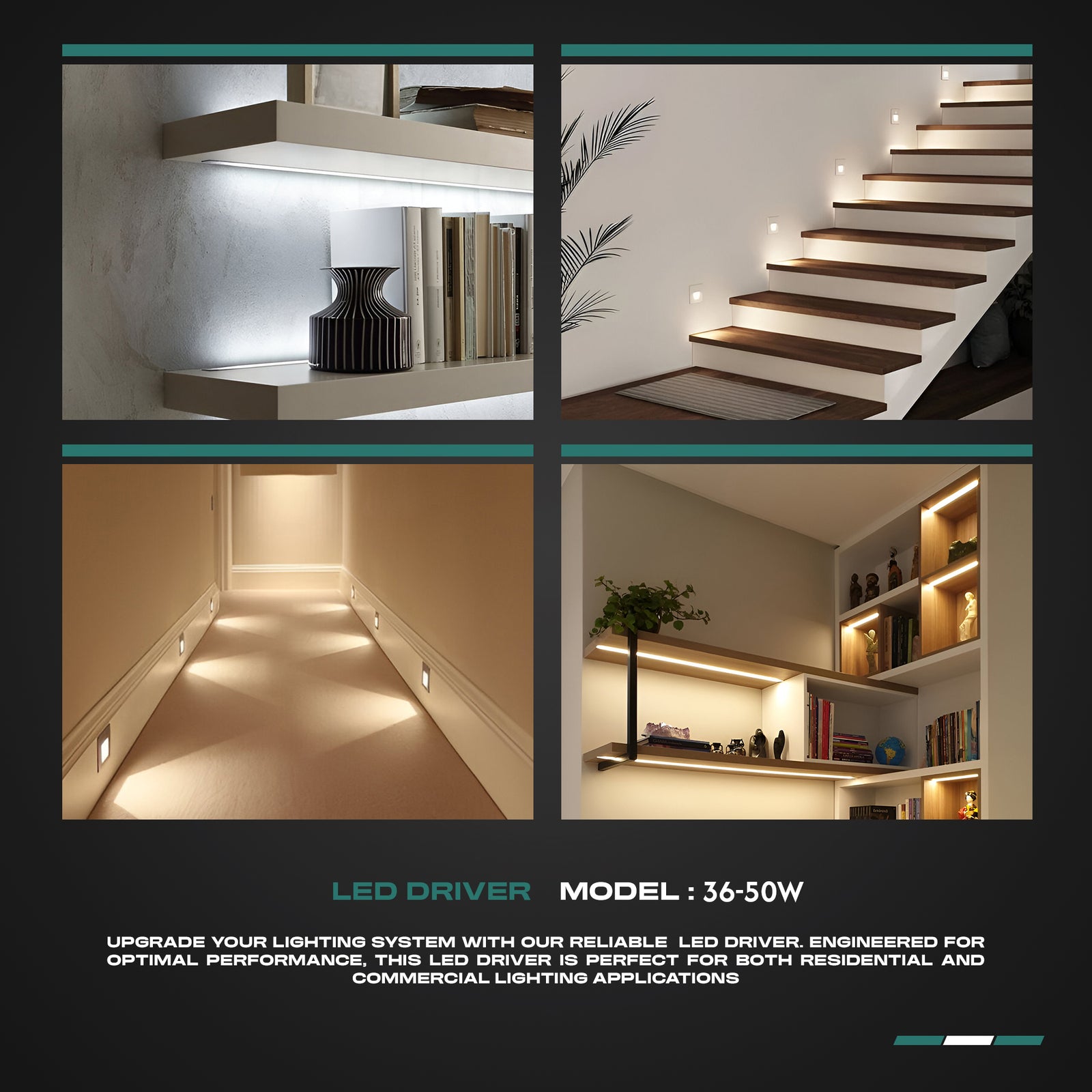 - Constant voltage power supply for 85V-265V DC LED lighting projects such as COB strip lights, LED strips, cabinet lights, LED displays, indoor deck lights, and stair step lights