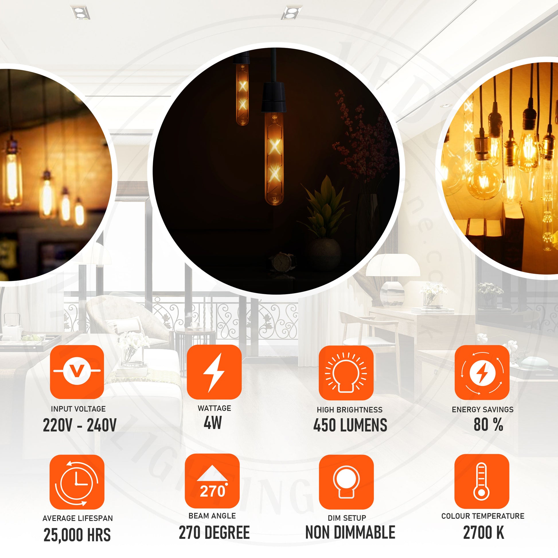 - Gemaakt van hoogwaardig amberkleurig buisvormig glas LED-licht met een Edison-stijl levensduur van maximaal 25.000 uur