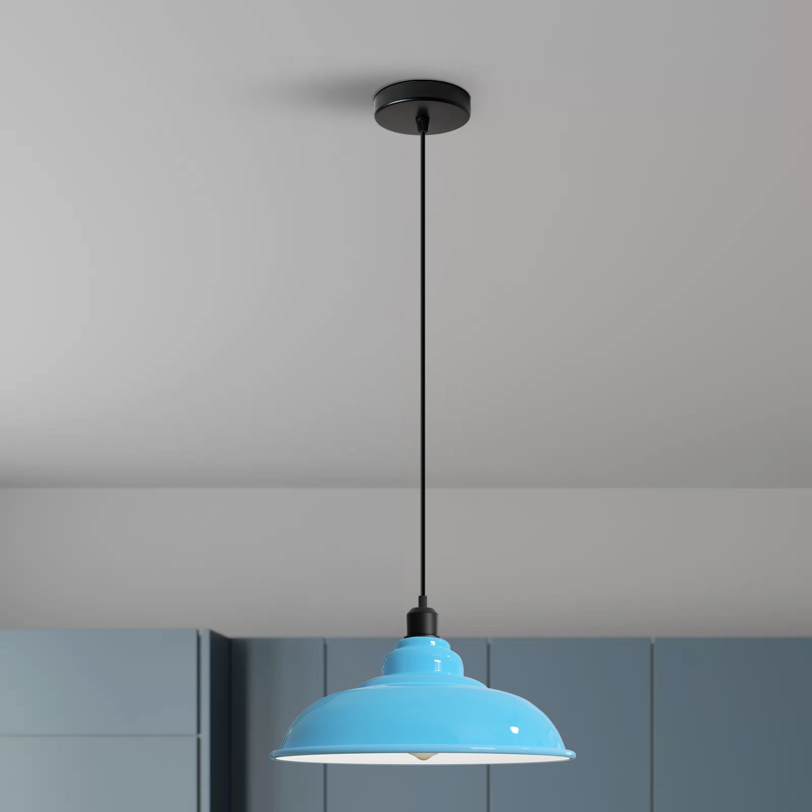 - Deze eenvoudige, strakke koepelvormige hanglamp heeft een beschilderde afwerking voor een moderne look. De witte afwerking aan de binnenkant van de kap versterkt de verlichting.