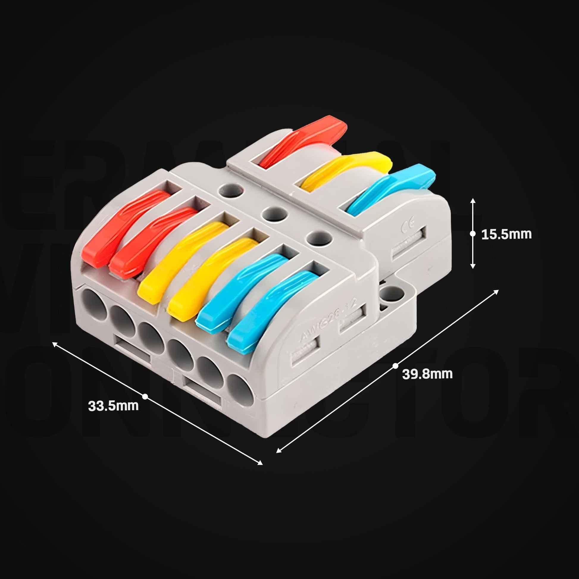 It facilitates secure electrical connections across 3 terminal slots with pull levers, ensuring ease of use and reliability without necessitating tools.