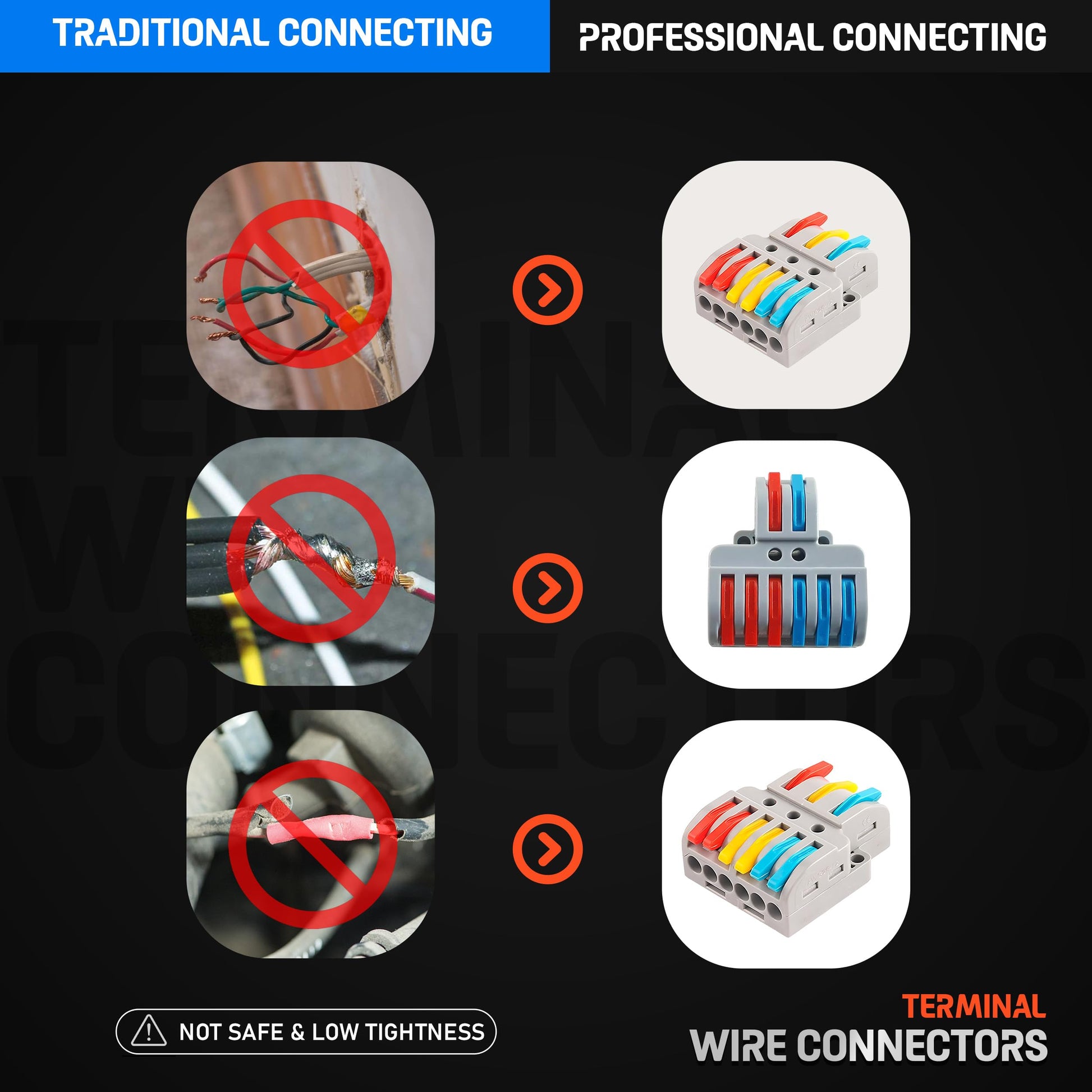Each terminal has a detection connection, Independent shrapnel for each junction, wires managed separately, and varying diameters for security.