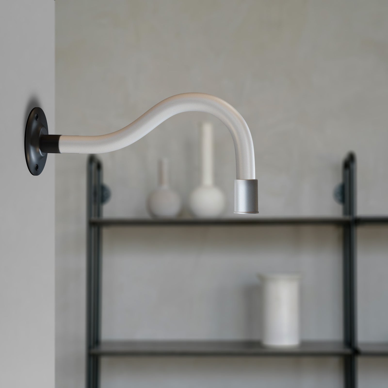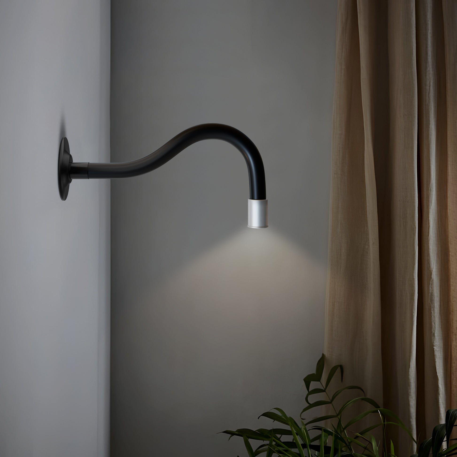 - De wandlamp is een klein, volledig metalen lichaam met een gebogen nek, waardoor hij kan draaien om in zittende en liggende posities te worden neergelaten en onder verschillende hoeken kan worden verlicht.