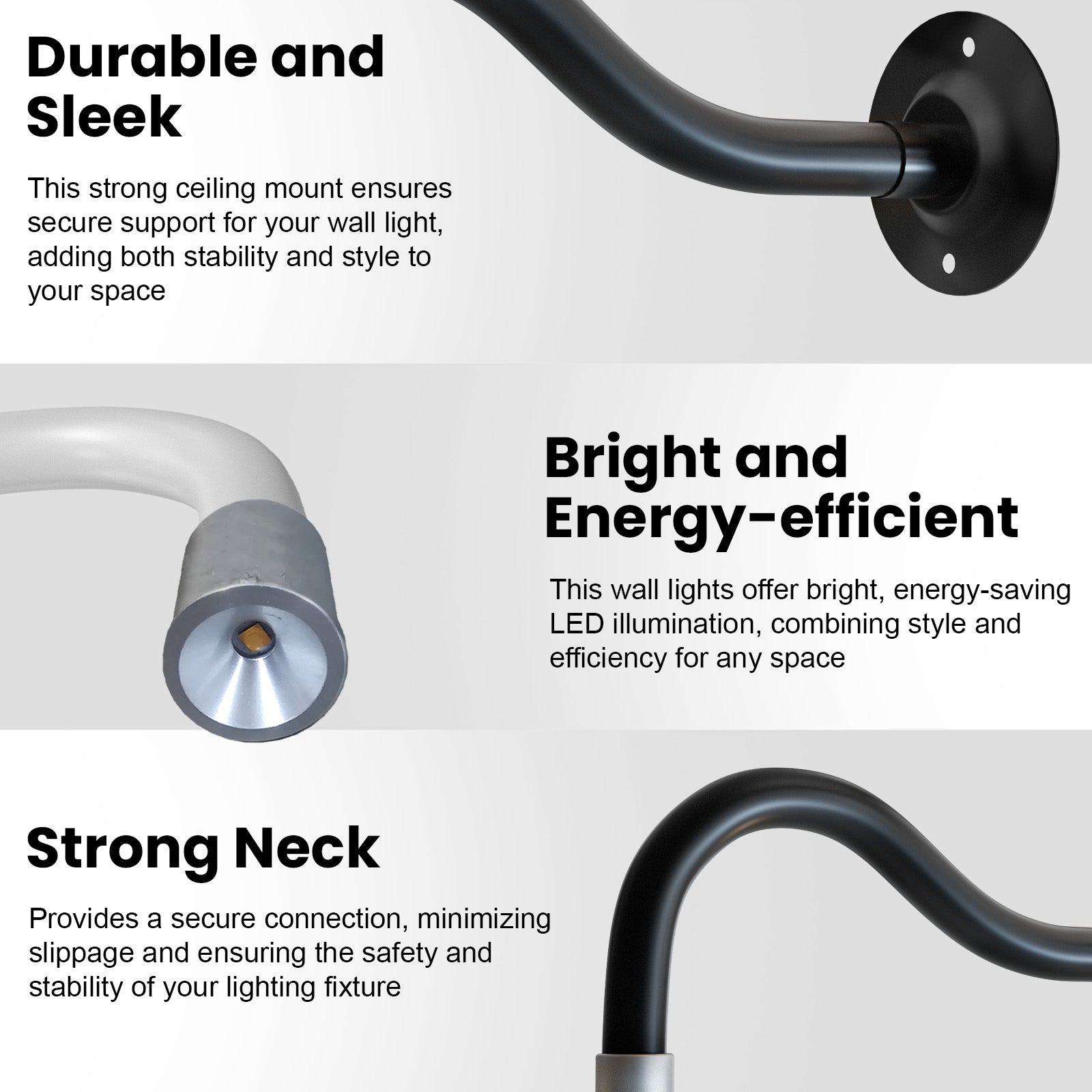 - De zwanenhalslamp is gemaakt van kwaliteitsmetaal en is een goede geleider. Energiebesparende lampen helpen elektriciteit te besparen en zien er nog steeds goed uit. Ze hebben een lange levensduur en roesten niet.