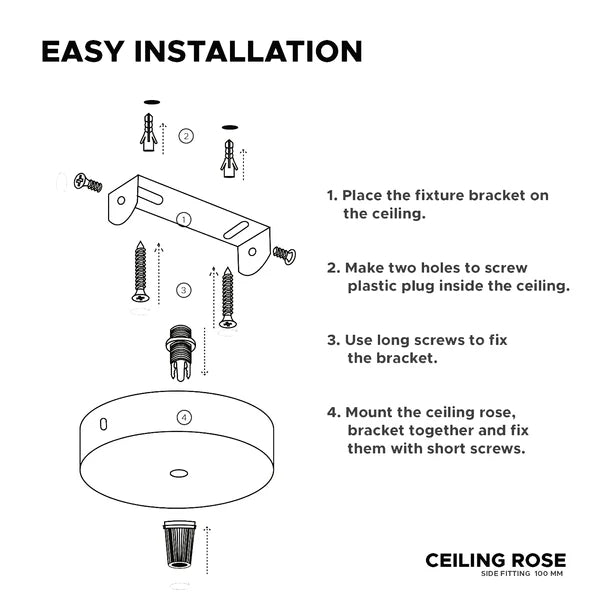 Inclusief bevestigingsbeugel voor plafondrozet, schroeven, ringen en bijpassende schroefdoppen.
