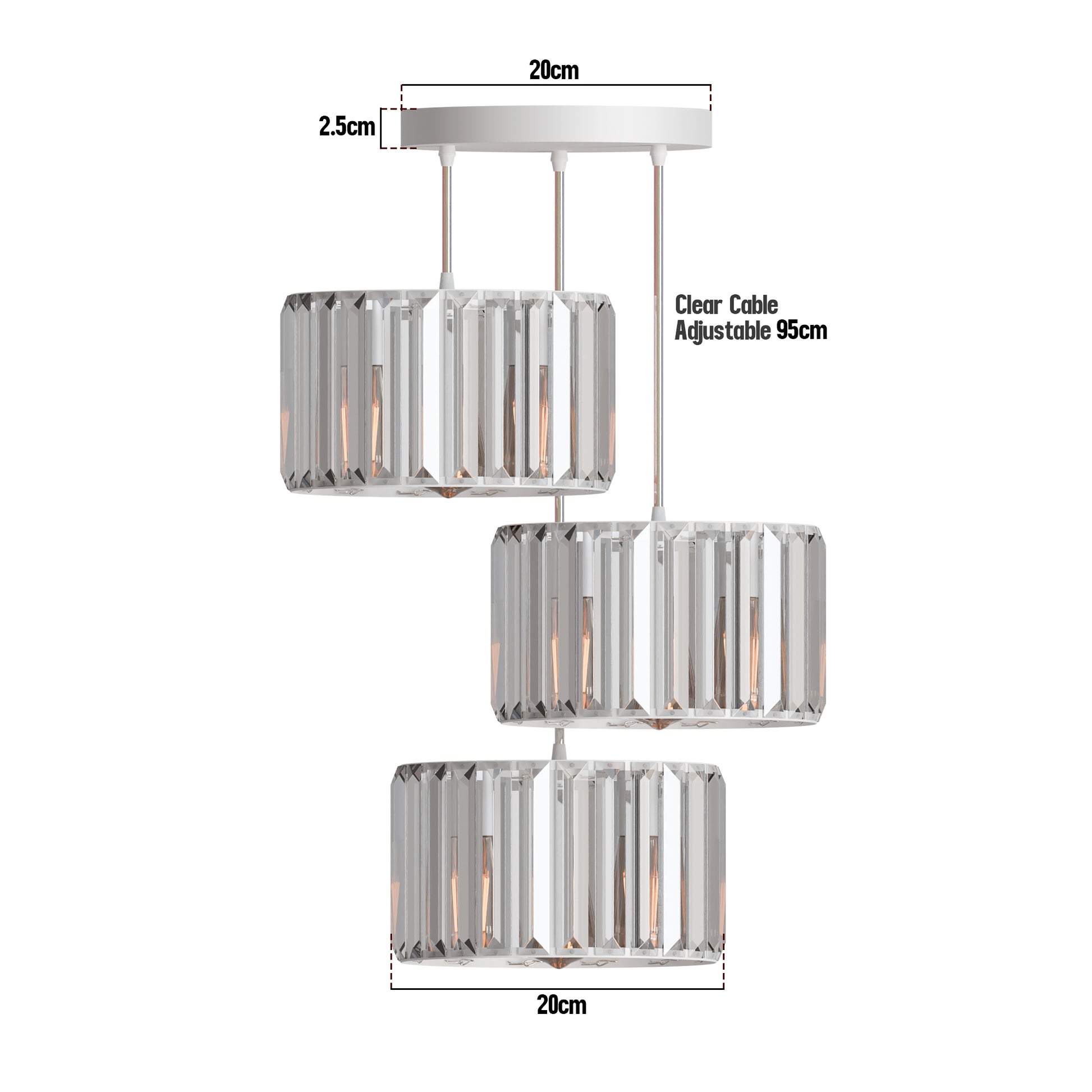 - Deze witte hanglamp met 3 lampen combineert een modern design met hoogwaardige kristallen elementen. Het stevige frame en de prachtige effecten zorgen voor een mooie en elegante uitstraling.