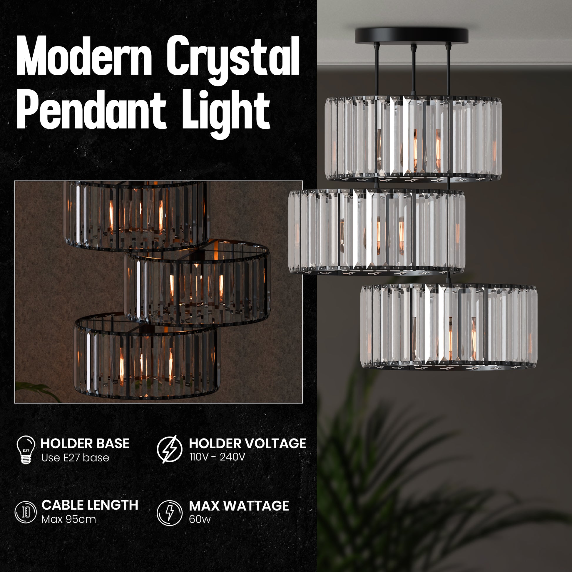 Moderne hanglamp met 3 koppen en heldere kristallen kap ~5873