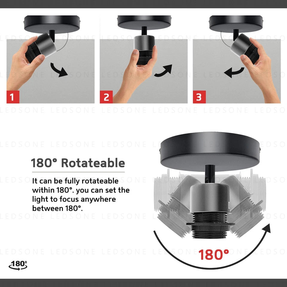 - 1 X Adjustable Multi-Directional 180 Rotatable Arm Ceiling Fixture(Bulb is optional)