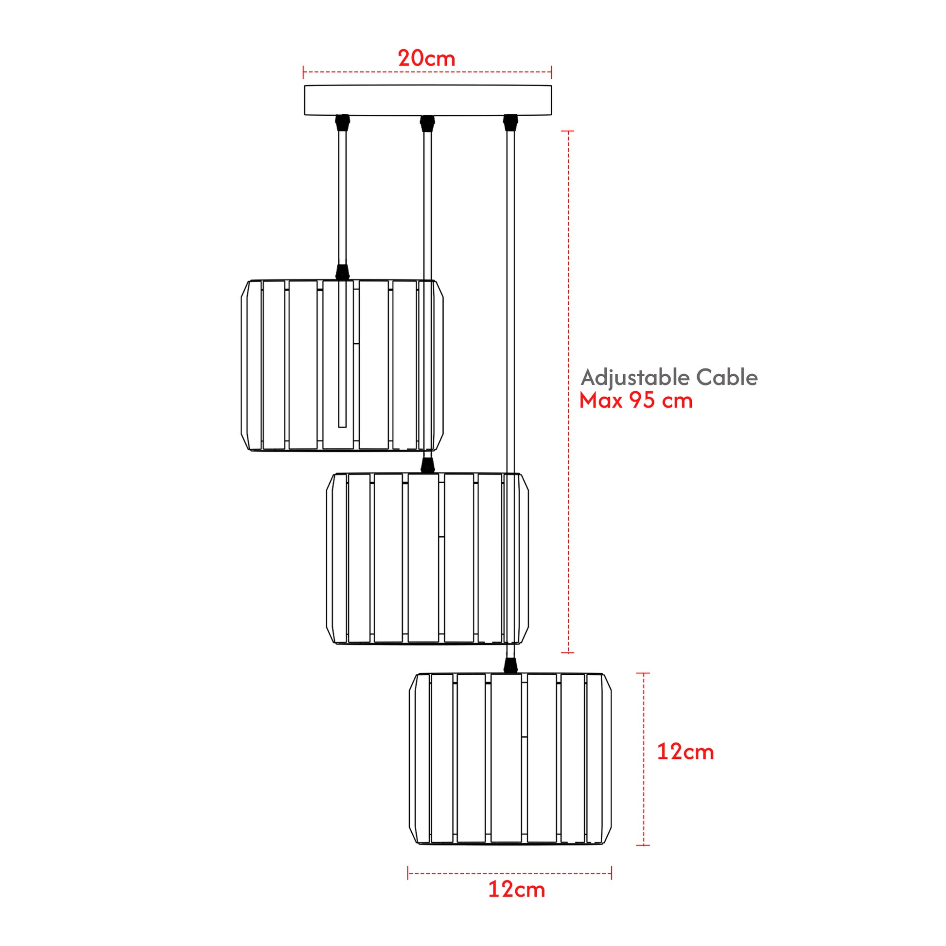 - Dimensions: Width 20CM x Height 2.5CM; Shade Hole Width 12cm Cable Height 95cm Installation